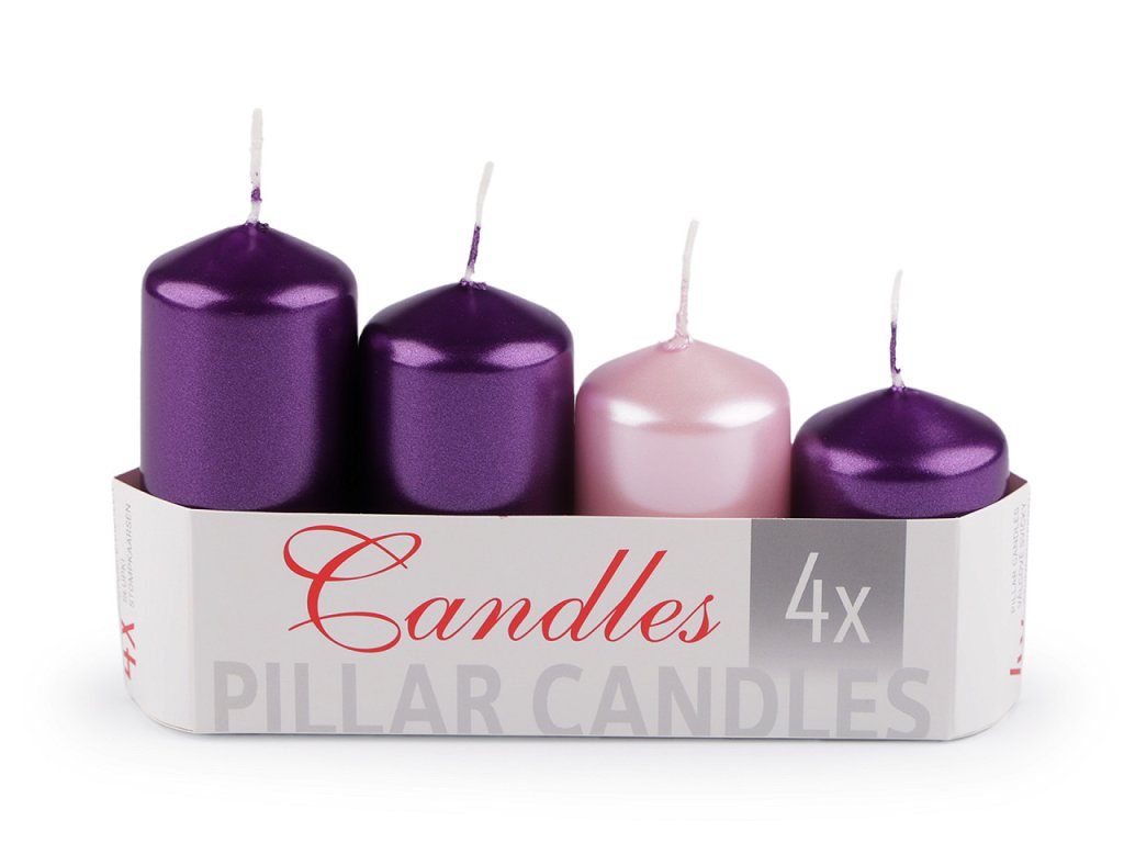 Adventní svíčky jsou nepostradatelnou součástí adventního věnce. Perleťový povrch jim dodává elegantní a slavnostní vzhled. Doporučujeme k nim použít bodce na zapichování. Jedno balení obsahuje 4 svíčky. Varianta č. 5 má výšku svíček 5 cm, 6,5 cm, 8 cm, 9,5 cm.- Průměr: 4 cm