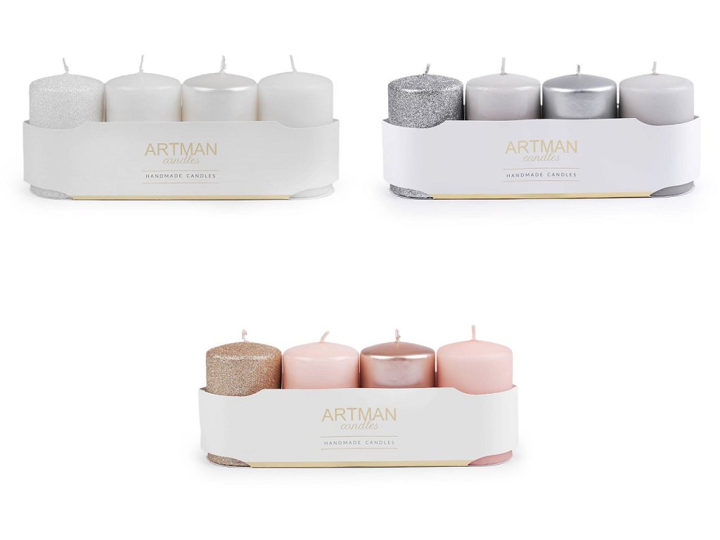 Adventní svíčky jsou velké a mají luxusní vzhled. V sadě najdete svíčky klasické, metalické a s glitry. Využijete je nejen ke zdobení adventních věnců, ale i jiných svátečních dekorací.- Průměr: 6 cm