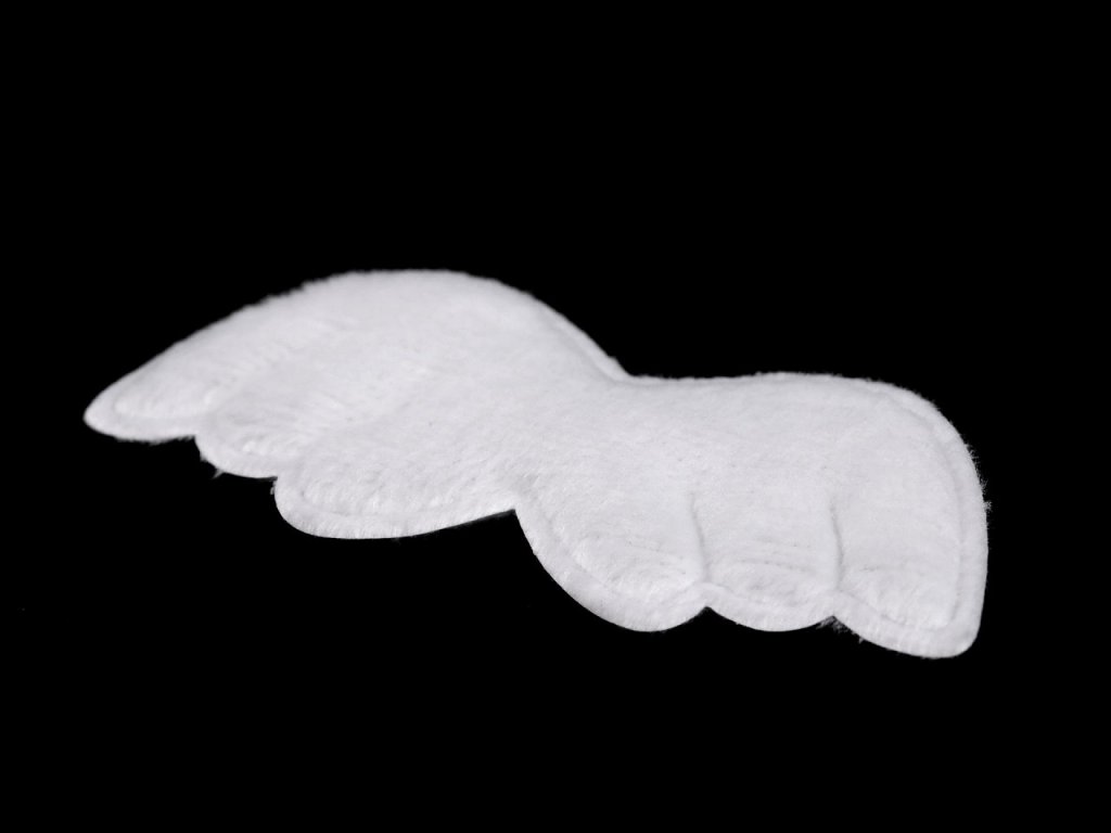 Textilní aplikace křídel je měkce vycpaná, na povrchu má jemný plyš. Můžete ji přišít i přilepit. Použití: křídla se hodí na výrobu dekoračních andělíčků. Využijete je i na zdobení oděvů např. na mikiny, bundy, svetry, čepice. Poutavě dozdobení čelenky, pukačky či gumičky do vlasů. Použít je můžete i ve scrapbookingu při vytváření různých přáníček, alb, deníků atd.- Rozměry: 2,5 x 6 cm