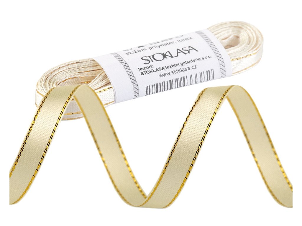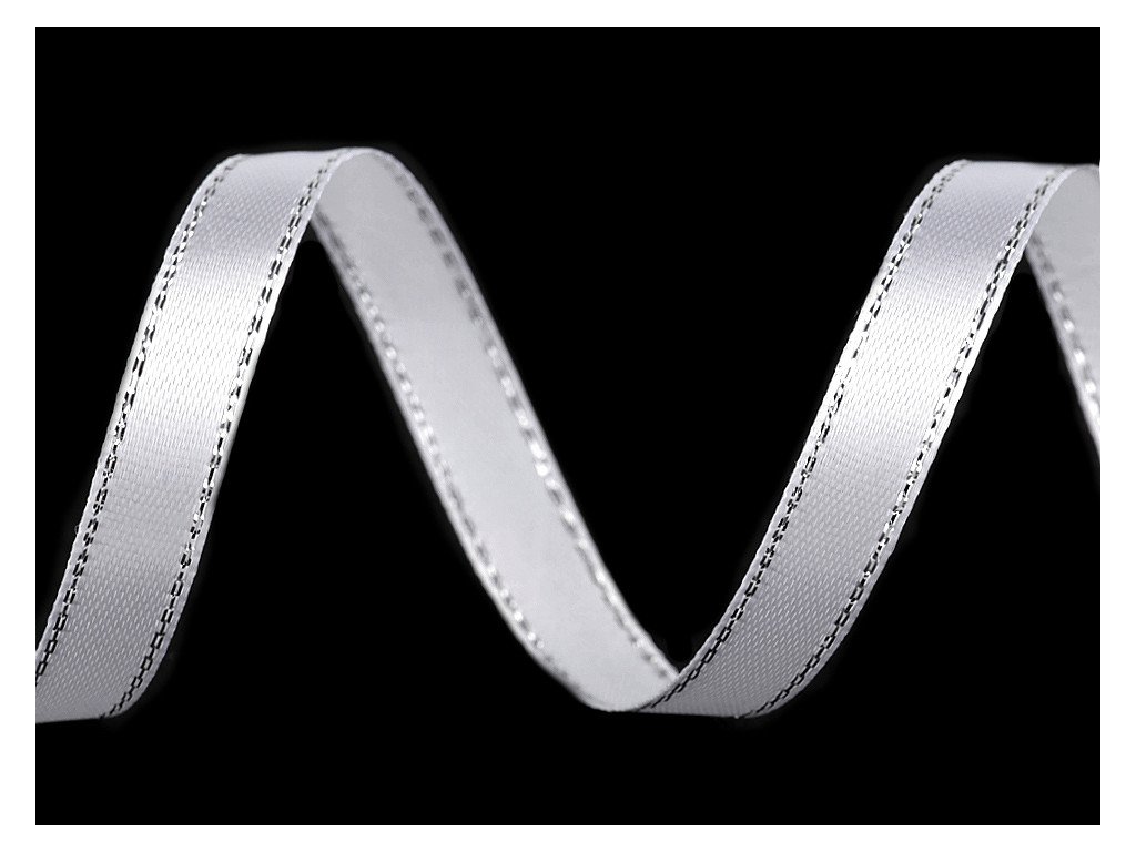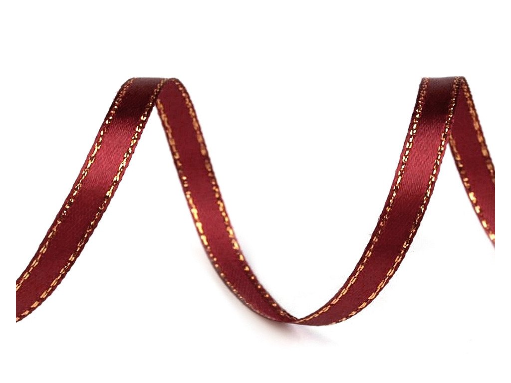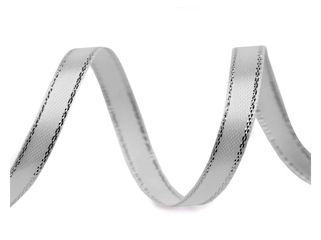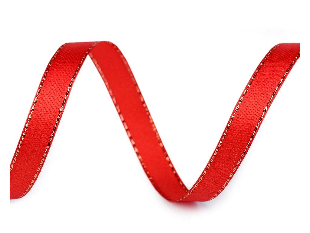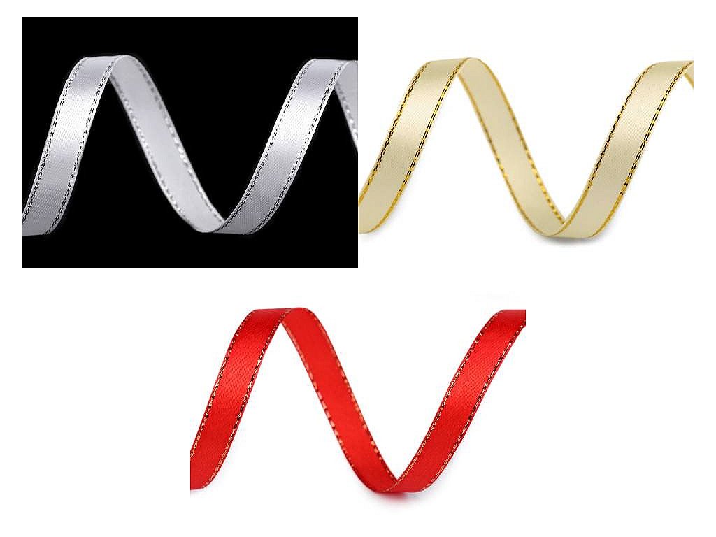 Atlasová stuha s lurexovým okrajem svazky po 5 m šíře 6 mm vánoční