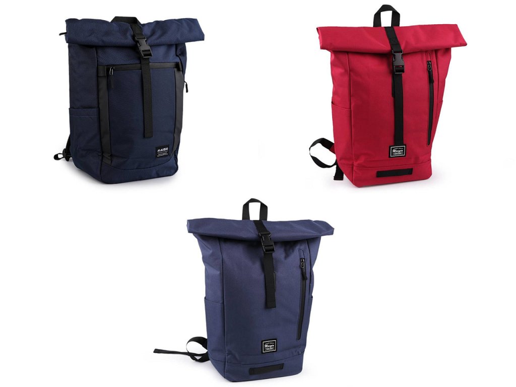 Textilní rolovací batoh se hodí především na výlety, do posilovny nebo do školy. Je mírně tuhý, s nastavitelnými popruhy. Je přesně tak velký, jak zrovna potřebujete. Stačí srolovat zbývající vrchní část a zacvaknout řemínek. Batohy č. 1 - 6 mají na bocích 2 praktické kapsy na uložení lahví na pití. Hlavní kapsu mají velice prostornou, uvnitř najdete ještě velkou plochou kapsu a kapsy na drobnosti. Na přední straně najdete plochou kapsu na zip. Nahoře mají batohy praktické poutko na pověšení. Batohy č. 7 - 11 mají hlavní kapsu velice prostornou, uvnitř najdete ještě velkou plochou kapsu. Na přední straně je kapsa na zip. Nahoře mají batohy praktické poutko na pověšení.- Rozměry (ŠxVxH): 40 x 45 x 15 cm
