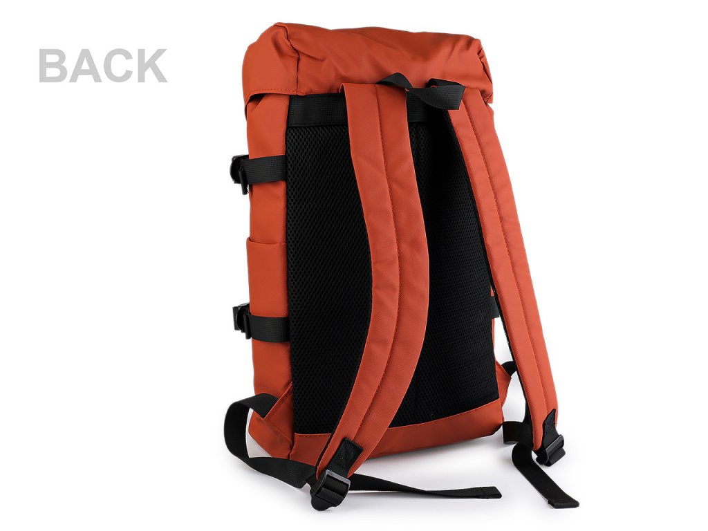 Velký textilní batoh se hodí především na výlety, do posilovny nebo do školy. Má pogumovaný, nepromokavý povrch, který zaručuje snadnou údržbu. Uzavírá se na klopu s poutkem a kovovým háčkem s plynulou regulací délky. Pod klopou najdete zdrhovadlo se šňůrkou a posuvnou brzdičkou. Uvnitř má batoh polstrovanou kapsu. Po stranách batohu jsou kapsy na láhve a různá poutka na upevnění dalších předmětů. Nahoře má batoh praktické poutko na pověšení, polstrované nastavitelné popruhy s plynulou regulací délky a polstrovaná záda.- Rozměry (ŠxVxH): 40 x 50 x 14 cm