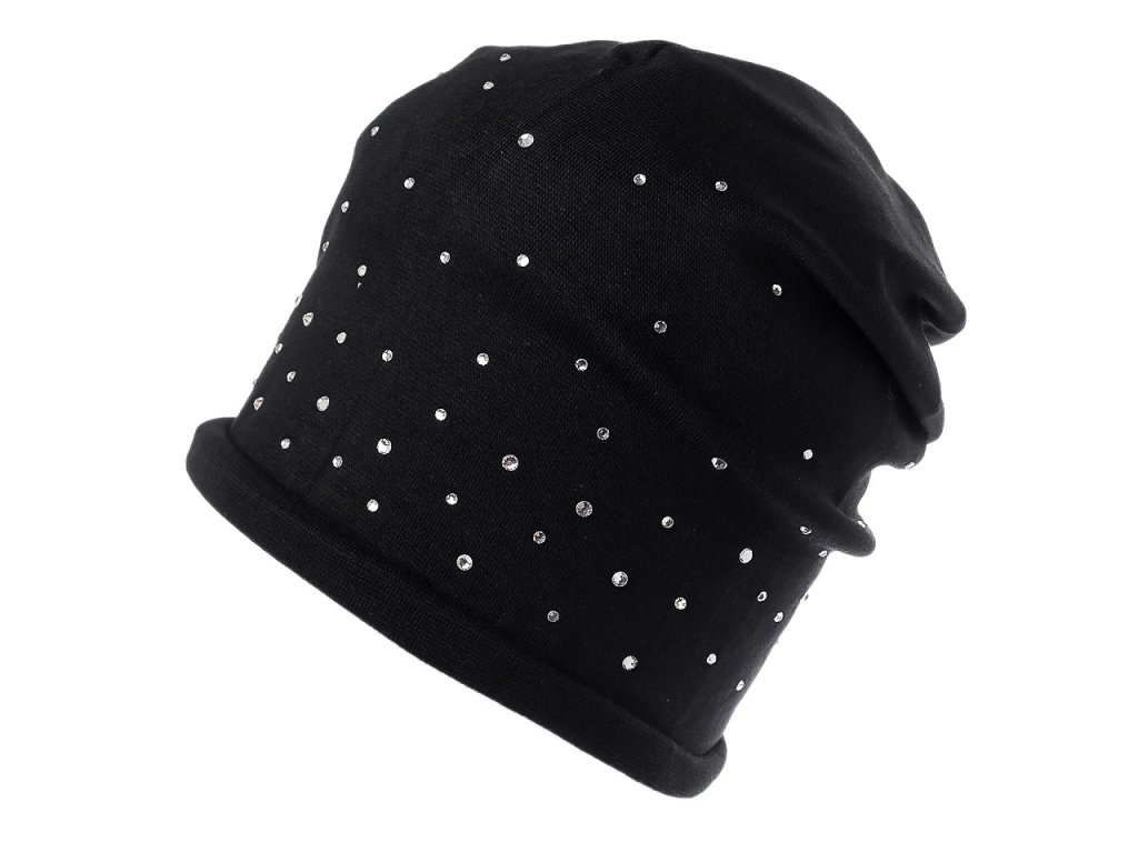 Bavlněná čepice z pružného úpletu je ideální do města, hodí se i na procházky a sportovní aktivity. Na přední straně je ozdobená broušenými kamínky, díky kterým se poutavě třpytí. Má mladistvý ležérní střih se spuštěným zadním koncem.. Snadno se kombinuje s různými outfity, hodí se do chladného podzimního počasí. Volně položený obvod lemu čepice je 46 cm, natažený až 64 cm. Výška čepice je 25 cm.- Výška: 25 cm