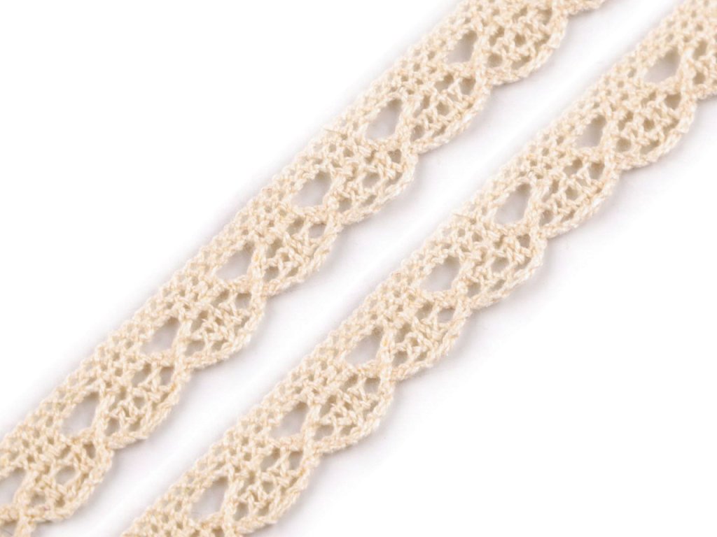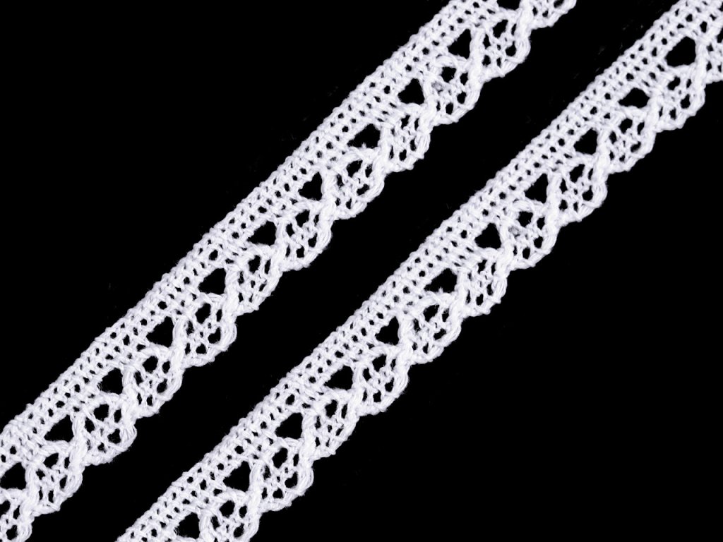 Paličkovaná bavlněná krajka je vhodná na ozdobení lemů ubrusů, deček nebo polštářů. Používá se také na lidové kroje a je oblíbená při výrobě lapačů snů.
