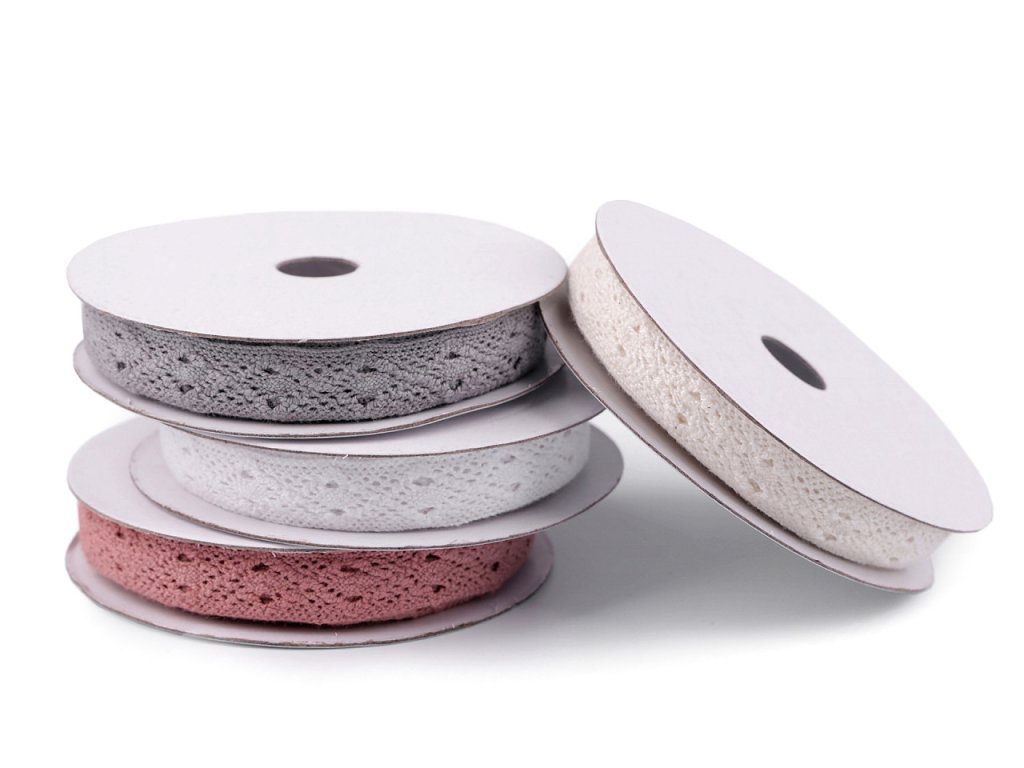 Paličkovaná krajka je vhodná na ozdobení lemů ubrusů, deček nebo polštářů. Používá se i na lidové kroje. Doporučujeme ji žehlit přes tkaninu. Balení 50 m je 10x5 m.- Šíře: 12 mm
