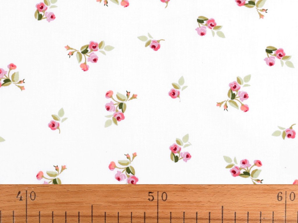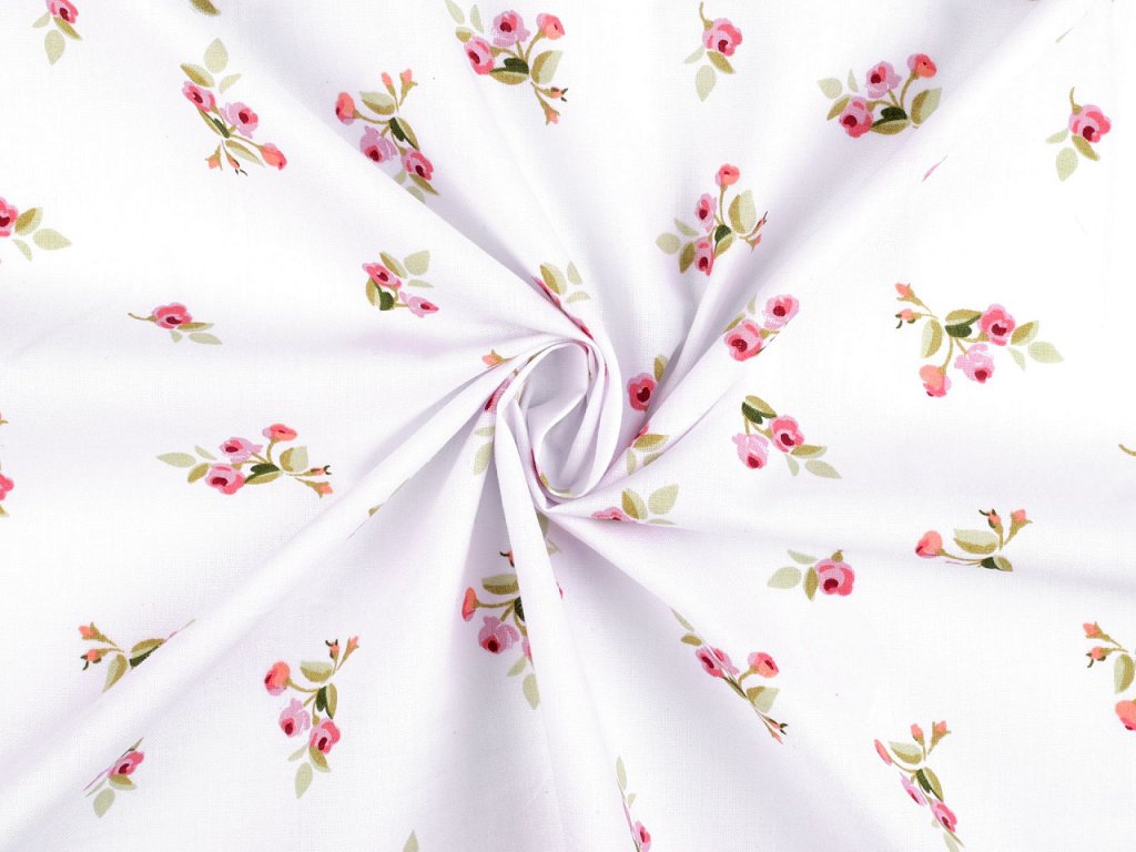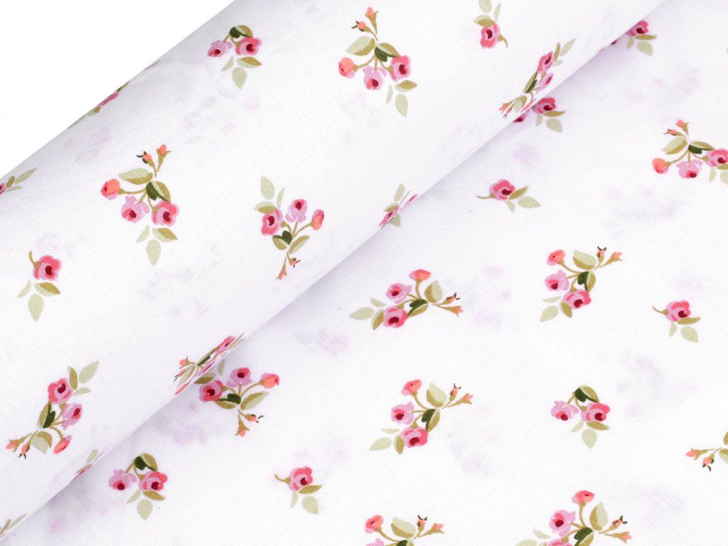Bavlněnou látku zdobí potisk drobných růžiček. Vynikne na povlečení, ubrusech, polštářích, ale můžete z ní ušít i tašky, pytlíky apod.- Gramáž: 115 g/m²