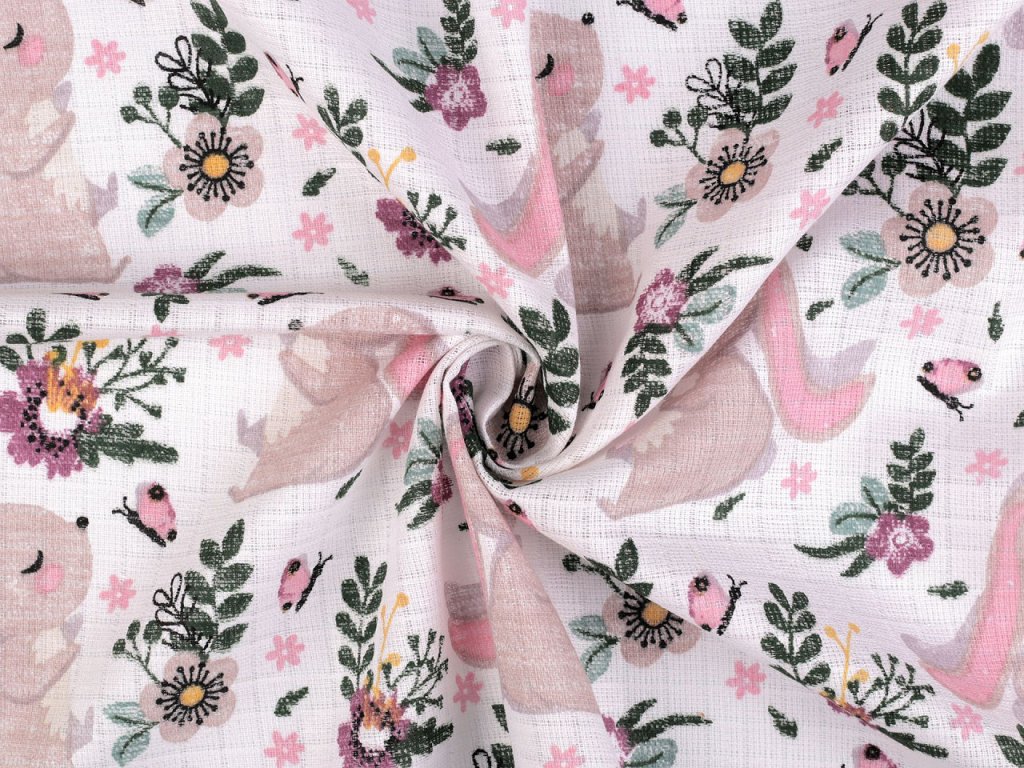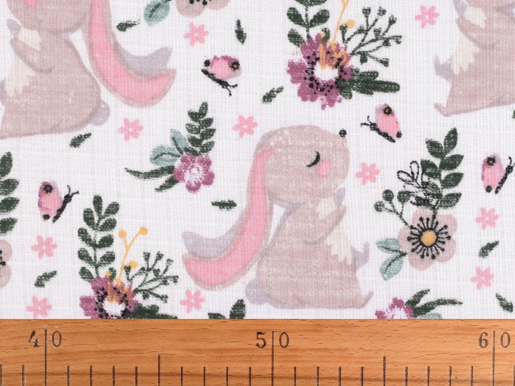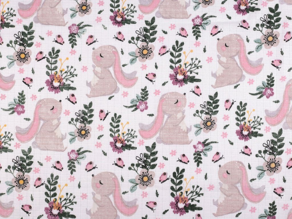 Bavlněnou plenkovinu s roztomilými králíčky využijete na šití plenek, baldachýnů, bryndáčků apod. Je vzdušná a příjemná na dotek.