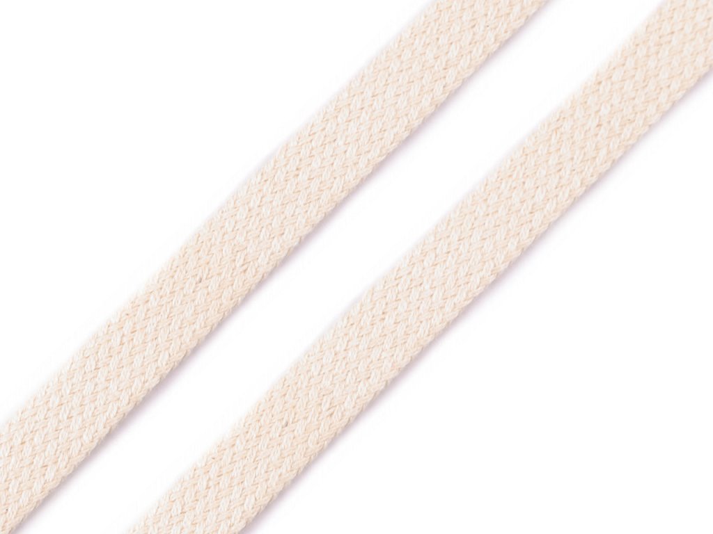 Plochá šnůra ze 100% bavlny se hodí na výrobu oděvů. Je velice pevná, má tvar dutinky (je kulatá).