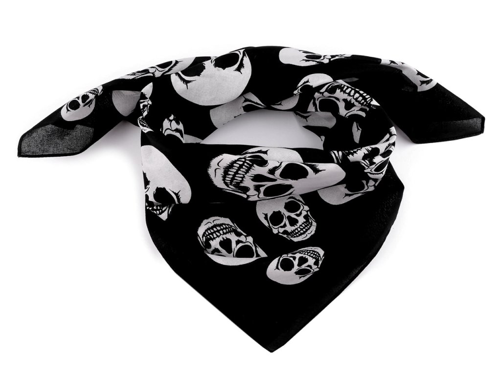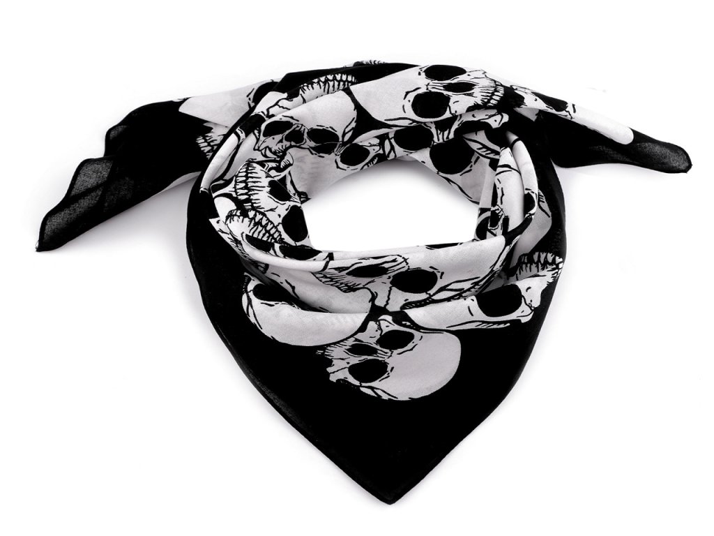 Bavlněný šátek s potiskem lebek skvěle doplní outfit všech motorkářů a rockerů. Je velice příjemný, vyrobený ze 100% bavlny. Šátek je české výroby, která vám zajišťuje vysokou kvalitu.- Šířka: 70 cm