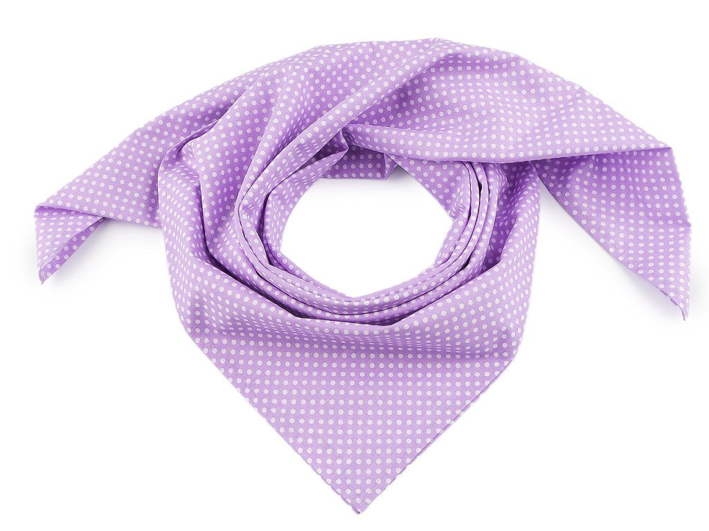Bavlněný šátek s drobnými puntíky můžete nosit nejen kolem krku, ale i jako pokrývku hlavy. Materiál je příjemný na dotek.Potisk šátku je jednostranný.- Šířka: 65 cm