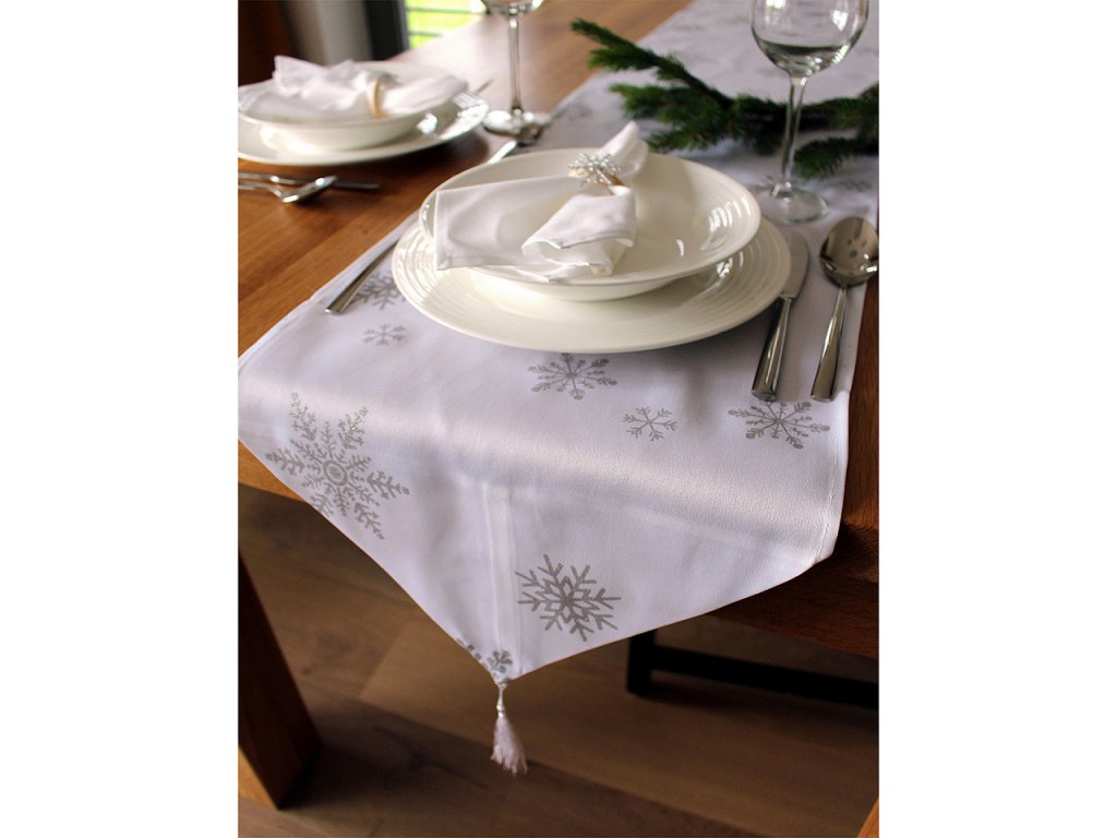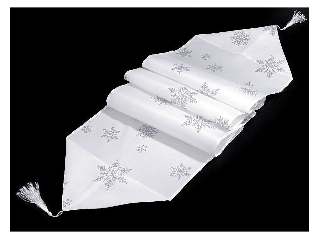Vánoční běhoun s glitrovými vločkami bude dominantou vašeho svátečního stolu. Na koncích ho zdobí střapce. Délka je uvedena bez střapců. Délka střapce je 13 cm. Běhouny mají z jedné strany viditelné zapošití.- Šíře: 35 cm