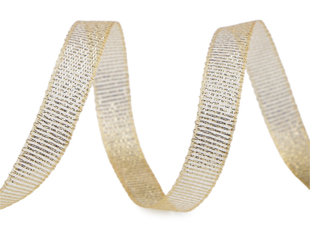 Stuhu s lurexem využijete k dekoračním účelům. Má zpevněný okraj bez použití drátku. Její povrch je díky lurexu hrubší a působí luxusněji. Použití: stuhou můžete ozdobit vánoční věnce a další dekorace. Je skvělá na balení dárků, vytváření ozdobných mašliček nebo jako stylový doplněk pro sváteční a slavnostní dekorace. Je ideální pro použití na svatbách, narozeninách, vánocích, nebo k jakékoliv jiné příležitosti, kdy chcete dodat svému projektu dotek luxusu a šarmu.- Šíře: 10 mm