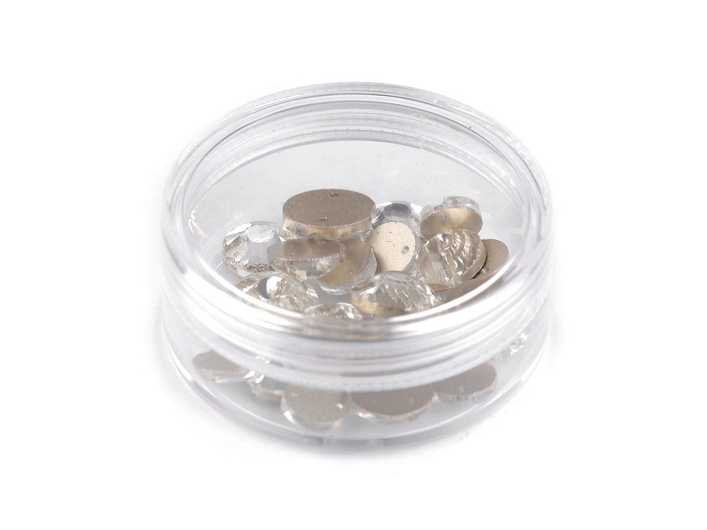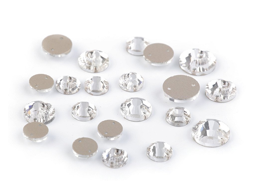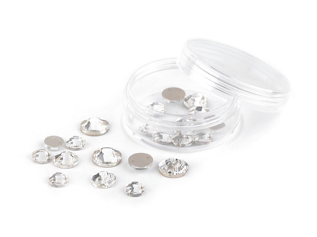 Mix kulatých, precizně broušených kamínků v dóze. Kamínky se efektně se třpytí. V každém jsou dva otvory, které umožňují snadné našívání. Na rubové straně jsou opatřeny krycí barvou, která zabraňuje zbarvení dle přiloženého podkladu. Využijete je při výrobě šitých šperků nebo zdobení oděvů. Dokonale vyniknou na společenských šatech, halenkách a doplňcích, jako jsou kabelky, psaníčka, klobouky apod. Kamínky dodáváme ve šroubovací dóze. Je zajímavým dekoračním předmětem, kamínky se v ní dobře skladují, navíc je praktická na manipulaci. V dóze je 21 ks kamínků o Ø 8, 10 a 12 mm.- Průměr: 8; 10; 12 mm