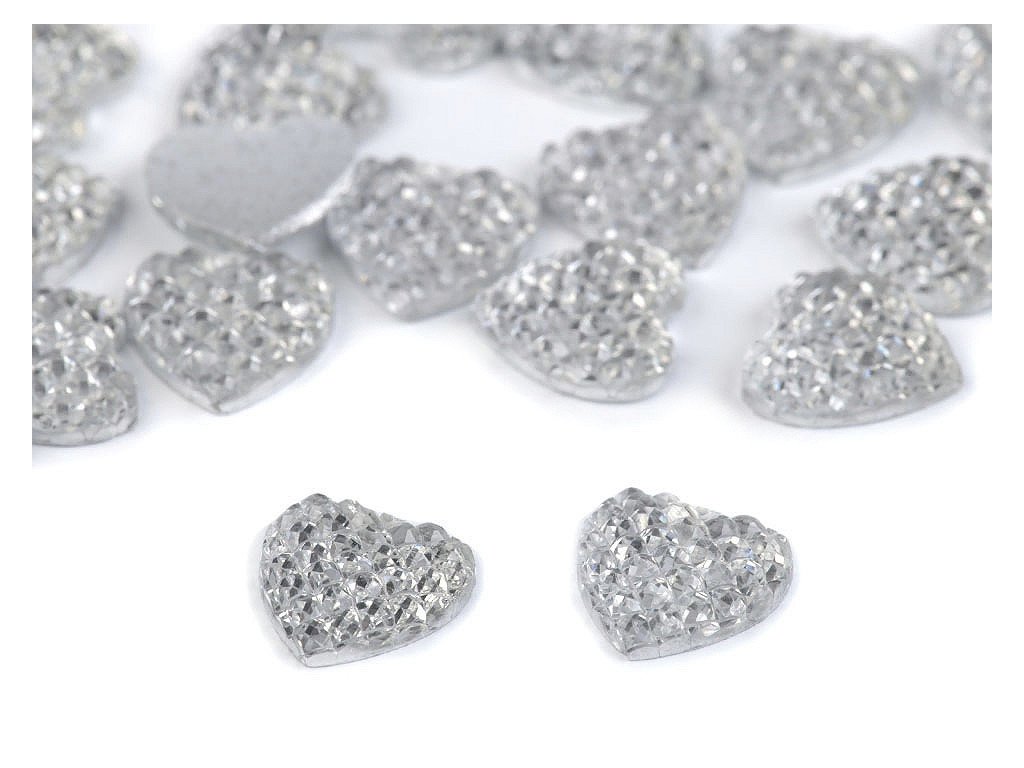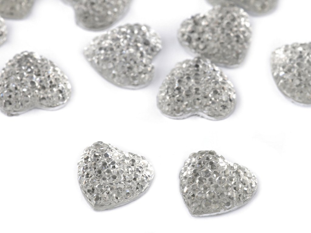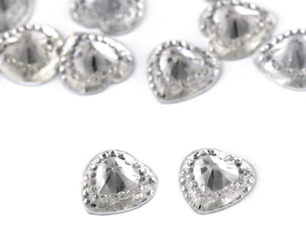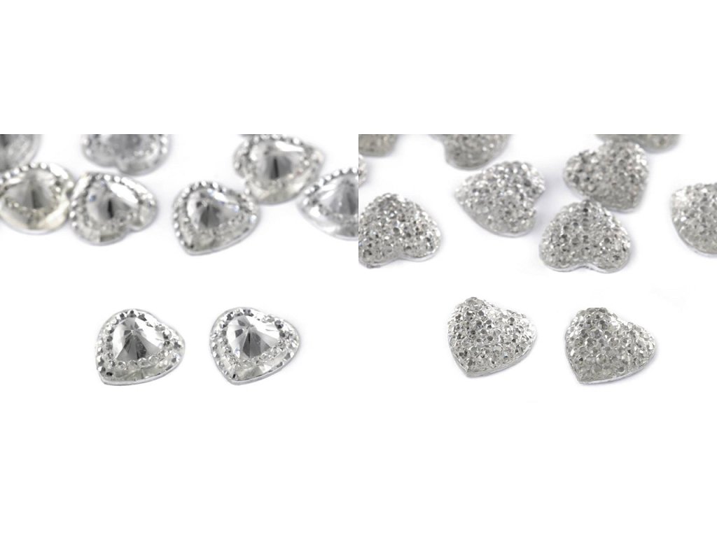 Broušené kamínky ve tvaru srdce mají působivý lesk. Vyniknou na středech textilních květů, svatebních vývazcích a jiných textilních výrobcích. Využijete je na scrapbooking a zdobení dalších předmětů např. přání, pozvánek, foto rámečků, alb apod. Spodní část je plochá. Doporučujeme je lepit na suchý, hladký a pevný povrch.- Průměr: 12 mm