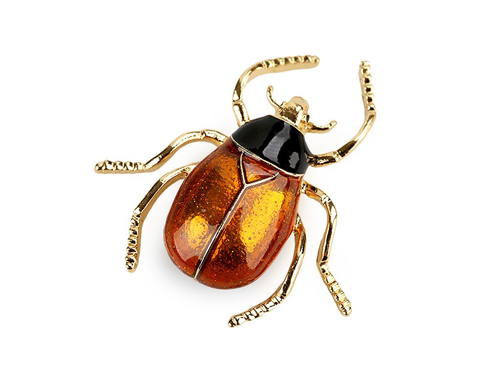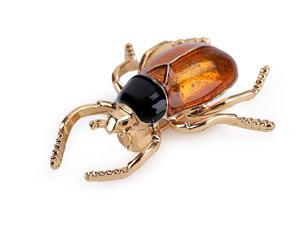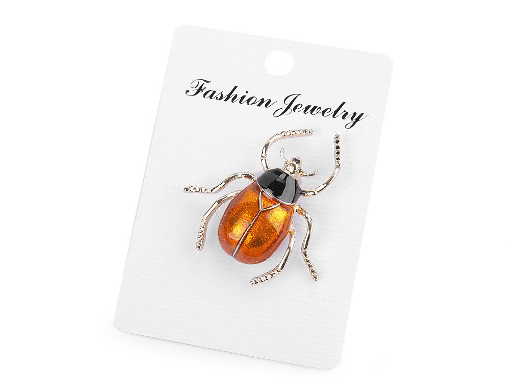 Brož brouk s barevným smaltem je originálním módním kouskem, který můžete využít na běžné nošení i na společenské události - návštěvy divadel, oslavy apod. Z rubu má brož zavírací špendlík. Můžete ji nosit nejen na oděvech, hodí se i k ozdobení klobouků, tašky či sepnutí šátku. Brož je na plastové kartě, kterou lze zavěsit na prodejní stojany.- Rozměry: 3,7 x 3,8 cm