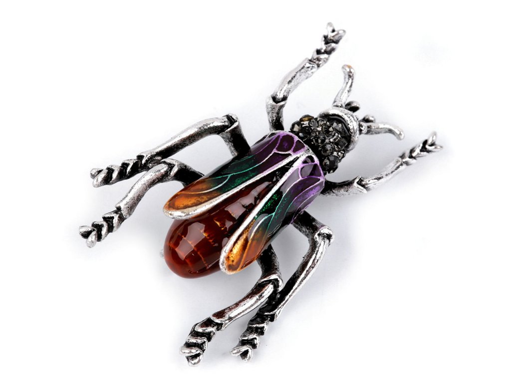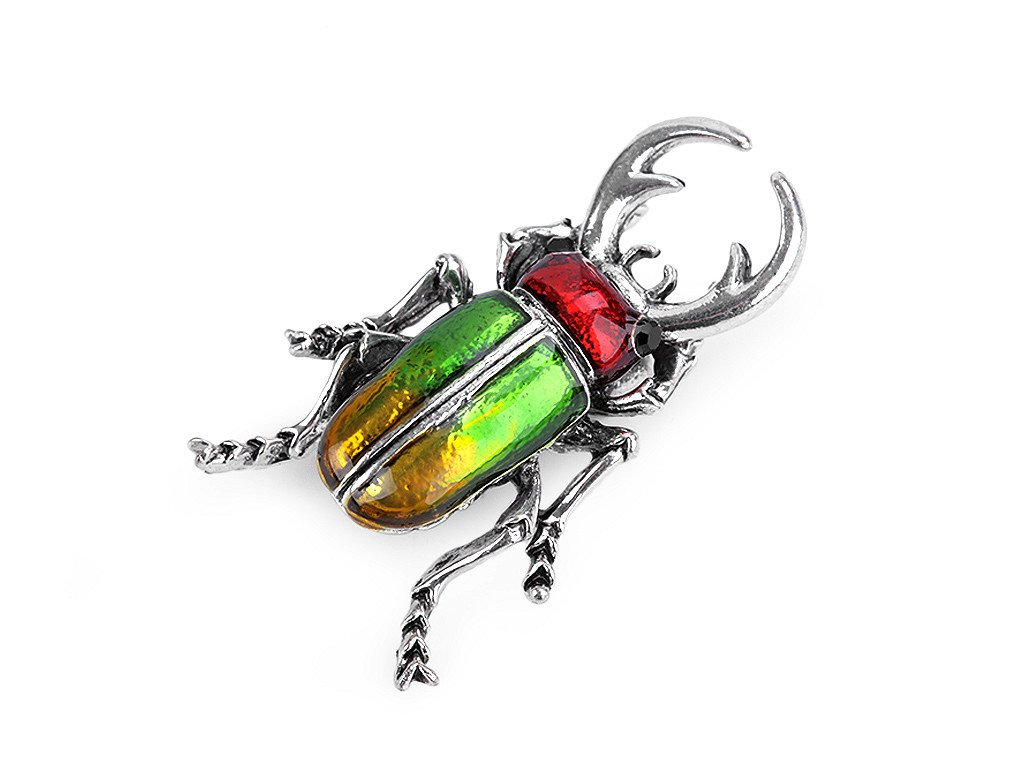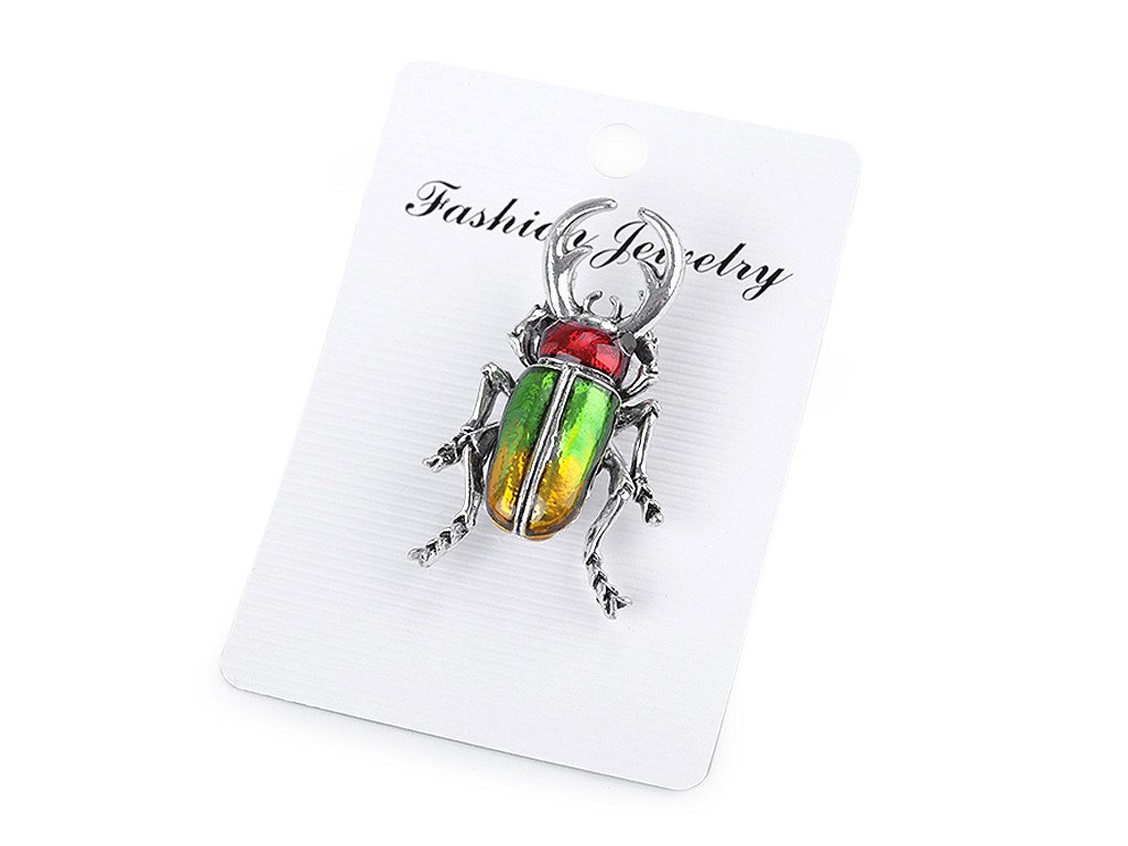 Brož brouk s barevným smaltem vás uchvátí svou duhovou hrou barev. Je originálním módním kouskem, který můžete využít na běžné nošení i na společenské události - návštěvy divadel, oslavy apod. Z rubu má brož zavírací špendlík. Můžete ji nosit nejen na oděvech, hodí se i k ozdobení klobouků, tašky či sepnutí šátku. Brož je na plastové kartě, kterou lze zavěsit na prodejní stojany.- Rozměry: 2,7 x 4 cm