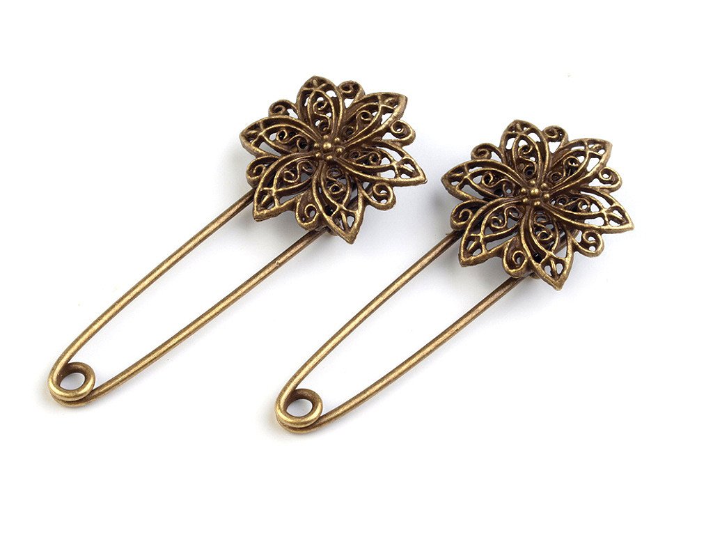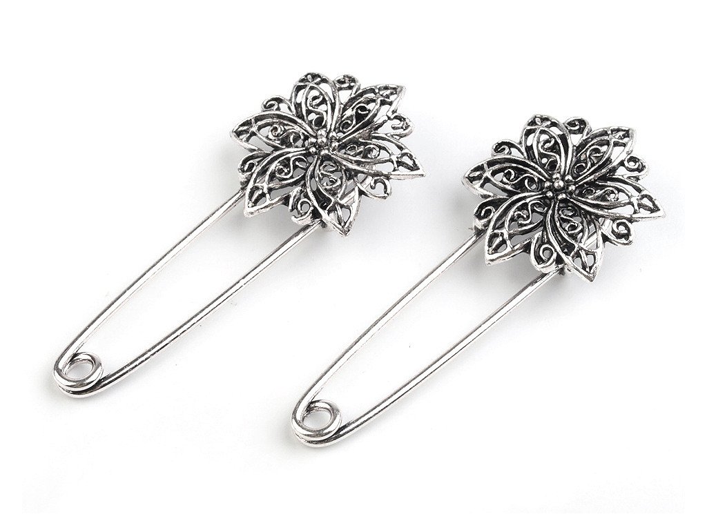 Zajímavá brož ve tvaru kytky na spínacím špendlíku vkusně ozdobí váš oděv. Má trochu širší špendlík, hodí se k připnutí na svetry a jiné tkaniny s většími oky, např. pletené čepice, tašky apod. Můžete ji nosit ke slavnostním událostem, vynosíte ji i ve všedních dnech. Doporučujeme ji na tmavší tkaniny z důvodu tmavé povrchové úpravy kovu.- Šířka: 2,5 cm