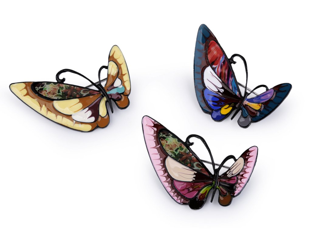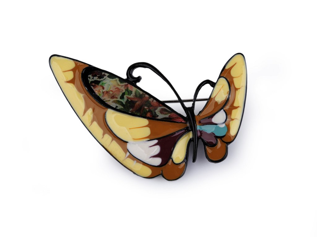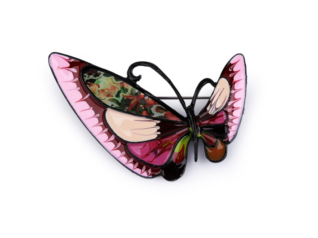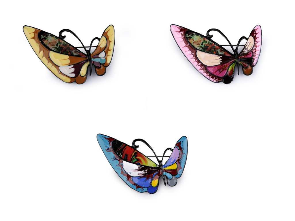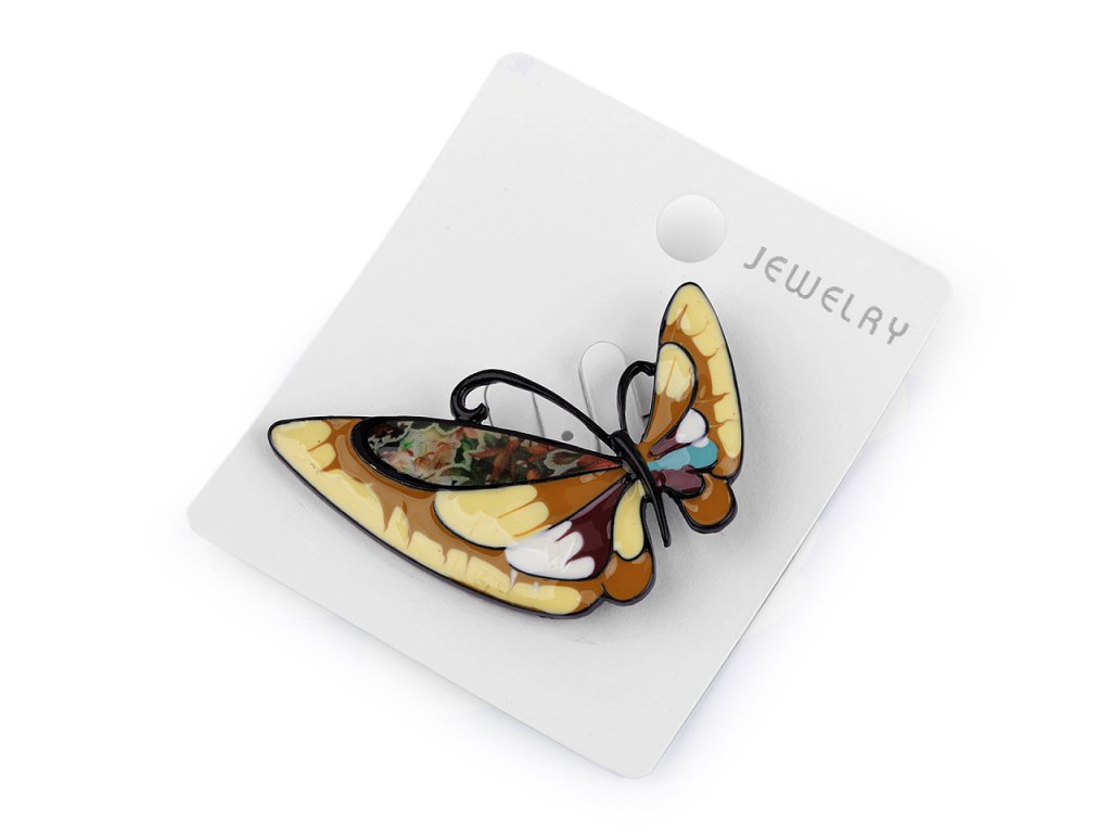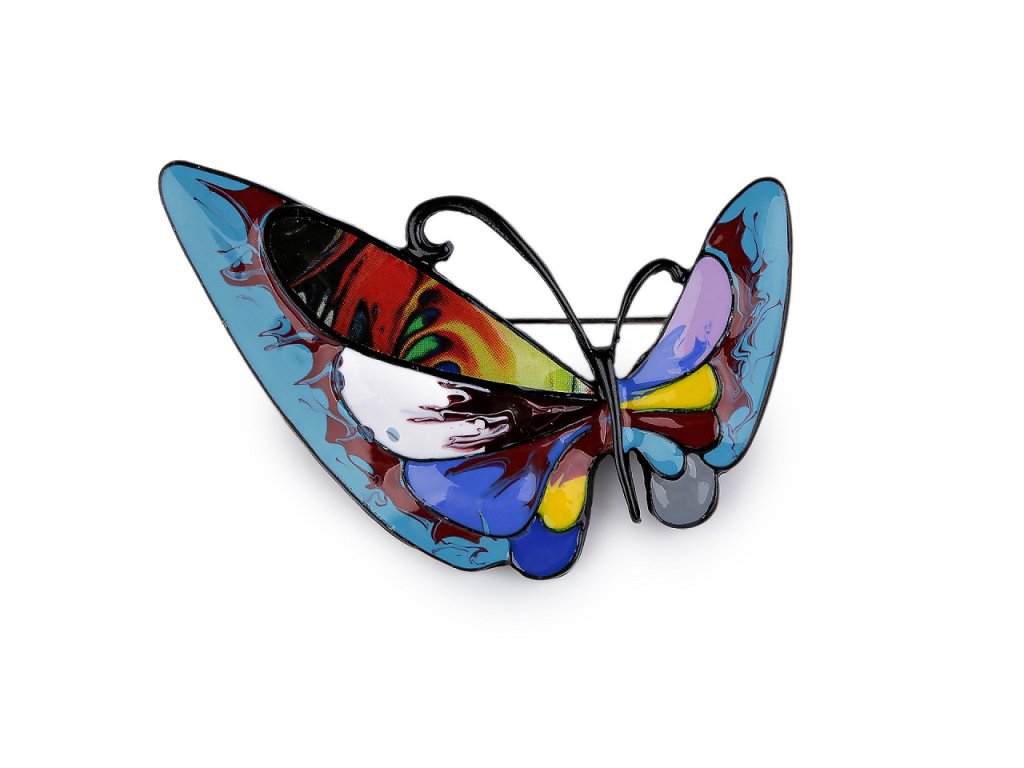 Brož motýla s barevným smaltem je elegantní a působivý doplněk, který dokáže oživit každý outfit. Je zpracována s důrazem na detail, což umocňuje její estetickou hodnotu. Z rubu má brožový špendlík. Můžete ji nosit nejen na oděvech, hodí se i k ozdobení klobouků, tašky či sepnutí šátku. Je skvělým dárkem pro každého, kdo ocení originální a hravé módní doplňky. Brož je na plastové kartě, kterou lze zavěsit na prodejní stojany.- Rozměry: 3,3 x 5,2 cm