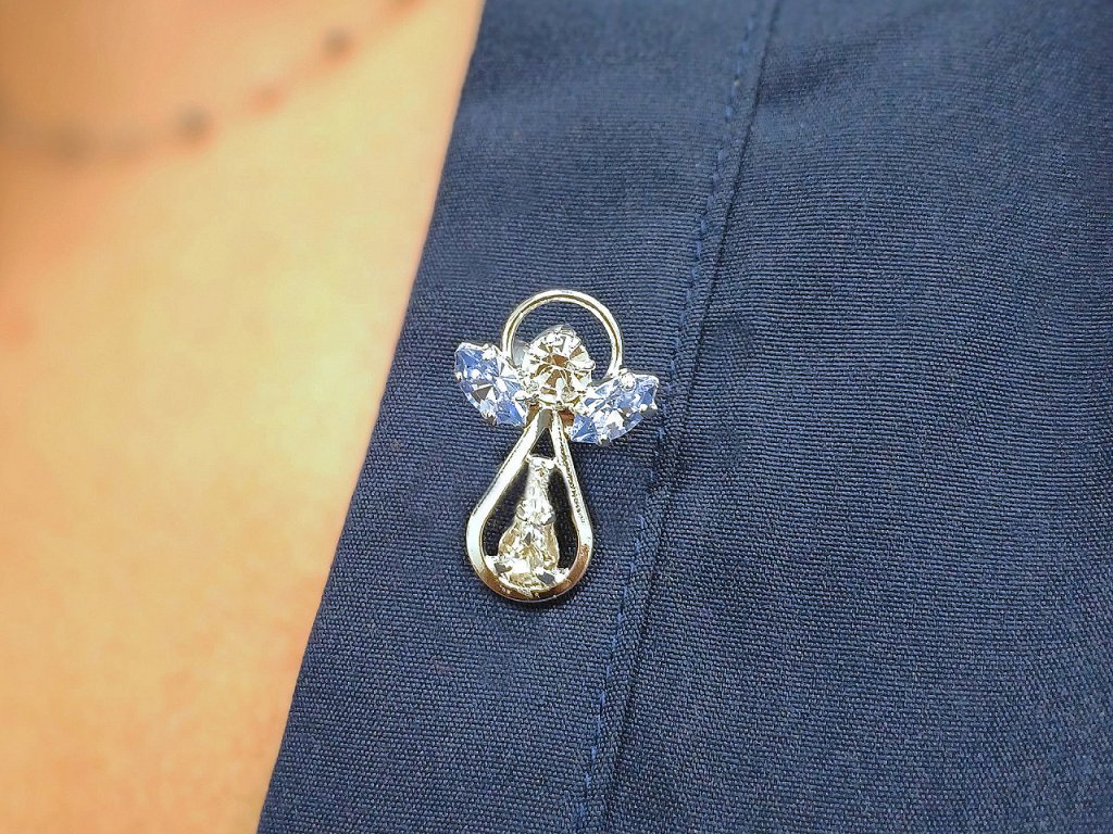 Brož / odznak štrasová vločka, anděl jablonecká bižuterie
