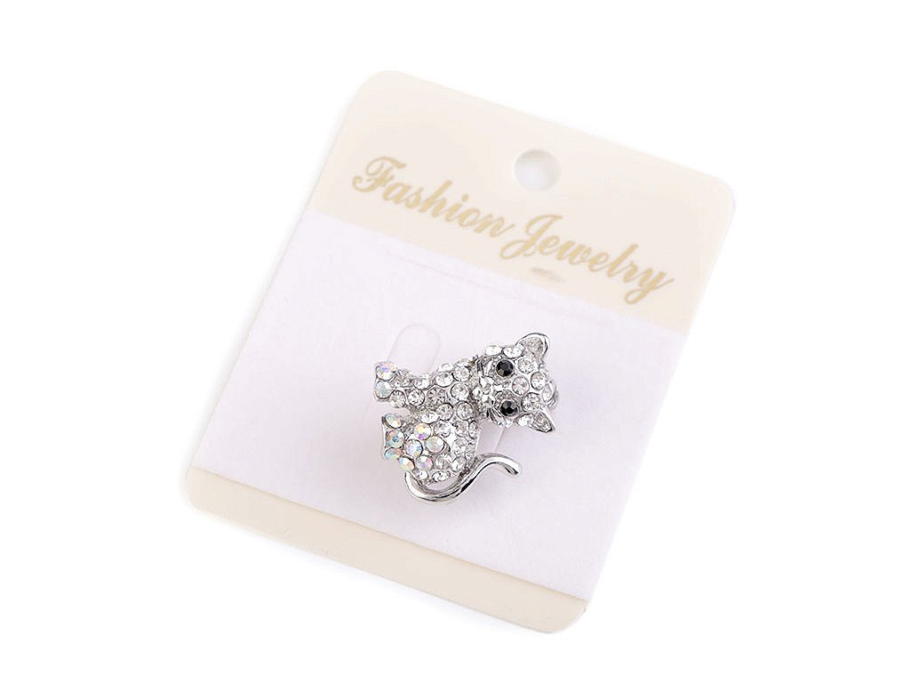 Elegantní třpytivá brož skvěle oživí jakýkoliv oděv. Kvalitní kovový základ je osázený broušenými kamínky, které vytvářejí oslnivé odlesky. Zapíná se pomocí spínacího špendlíku, který má pojistku proti nechtěnému otevření. Potěší mladší slečny i zralé ženy. Brož se výborně umisťuje na klobouk, klopu kabátu, vestu či svetr. Je vhodná i k připnutí na brašnu, jako ozdoba tašky či batohu. Rozměry brože č.1 - koťátko - jsou 1,8 x 2 cm. Na tlapkách má kamínky s AB efektem.- Šířka: cca 1,8 cm