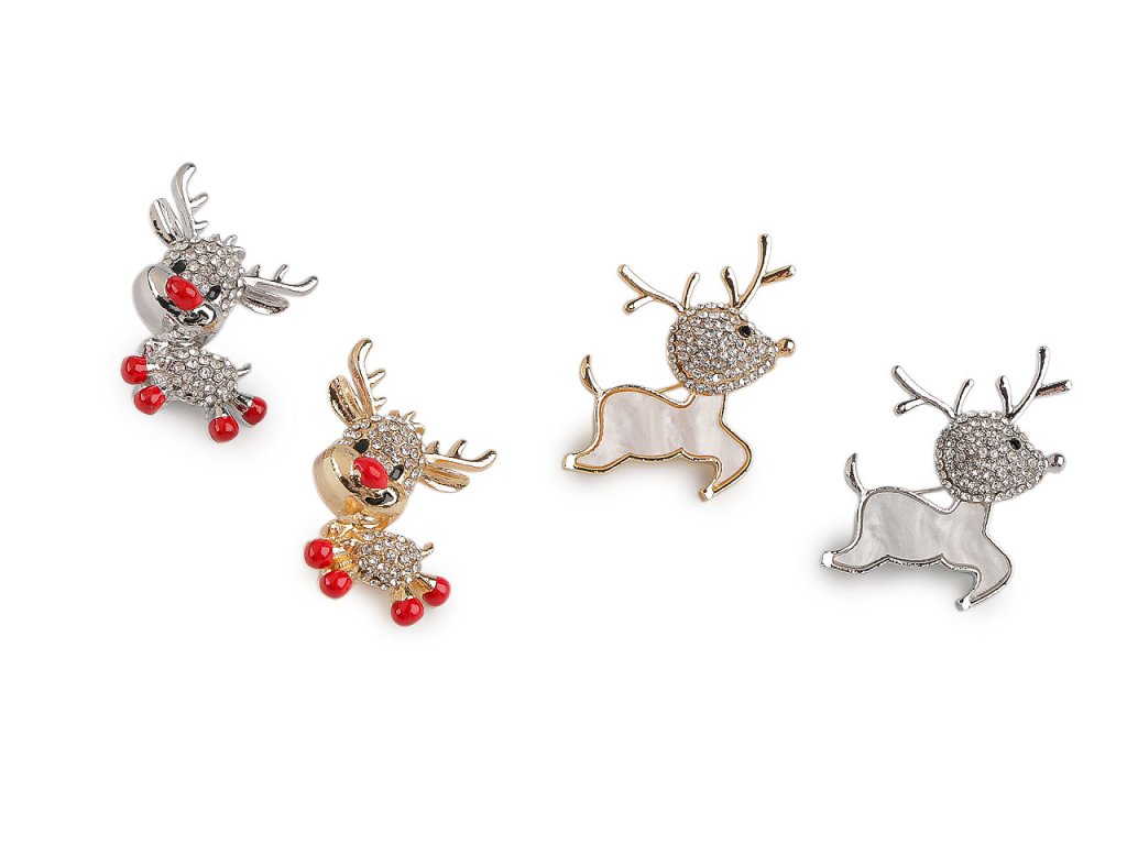 Elegantní brož s roztomilým sobem bude hravým doplňkem vašeho oděvu. Díky bohatému zdobení broušenými kamínky se efektně třpytí, skvěle dozdobí košile, saka, svetry, kabelky či čepice. Hodí se i na ozdobné sepnutí šátku. Sob č. 3 a 4 je ozdobený imitací perleti. Brož má vzadu brožový špendlík. Je na plastové kartě, která se dá zavěsit na prodejní stojany.- Rozměry: 3 x 3,7 cm