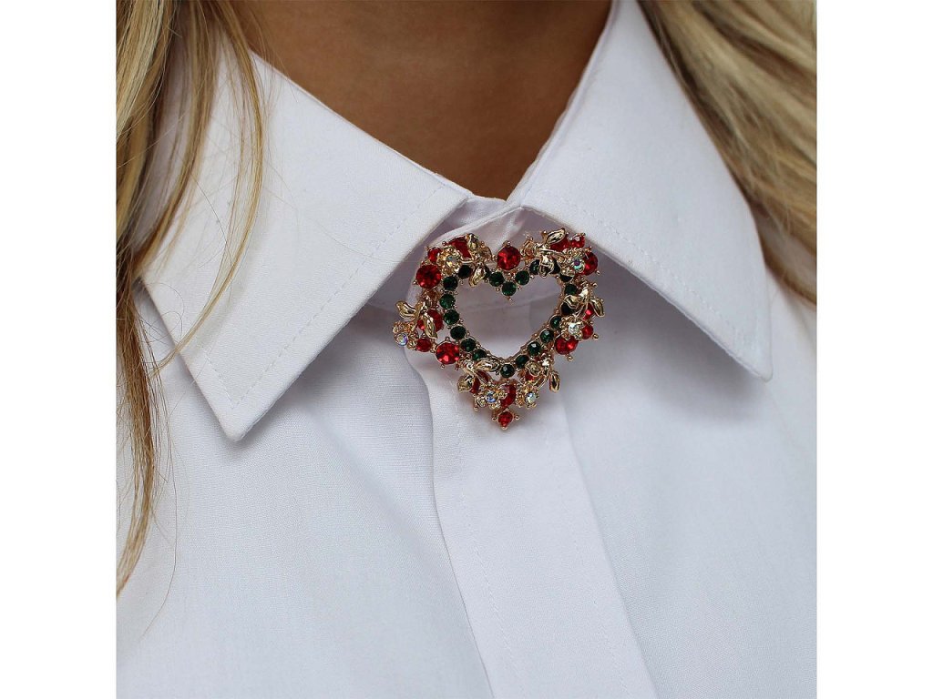 Brož s broušenými kamínky vánoční stromeček, srdce