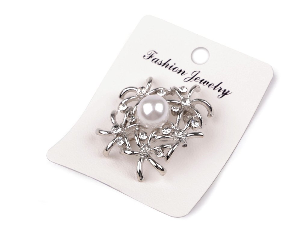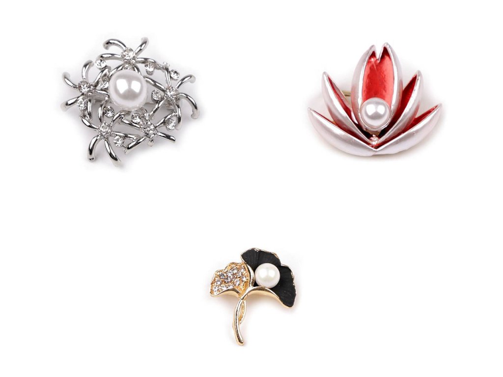 Brož s motivem květů rostlin bude dokonalým doplňkem vašeho oděvu. Díky perly elegantně dozdobí halenky, šaty, saka, svetry, kabáty, kabelky či čepice. Hodí se i na ozdobné sepnutí šátku. Brož má vzadu brožový špendlík. Je na plastové kartě, která se dá zavěsit na prodejní stojany.- Průměr: č. 1: 4 cm