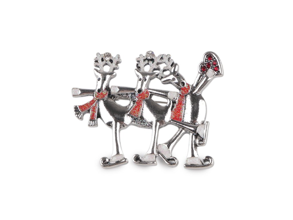 Vánoční brož s barevným smaltem představuje dokonalý doplněk pro zimní sezónu. Je decentně osázená broušenými kamínky. Můžete ji použít k ozdobení svých oblíbených zimních outfitů, od kabátů až po svetry, košile, saka, kabelky i čepice, kterým dodá osobitý styl a kouzlo. Brož má vzadu brožový špendlík. Je na plastové kartě, která se dá zavěsit na prodejní stojany.- Rozměry: č. 1: 6 x 5,3 cm