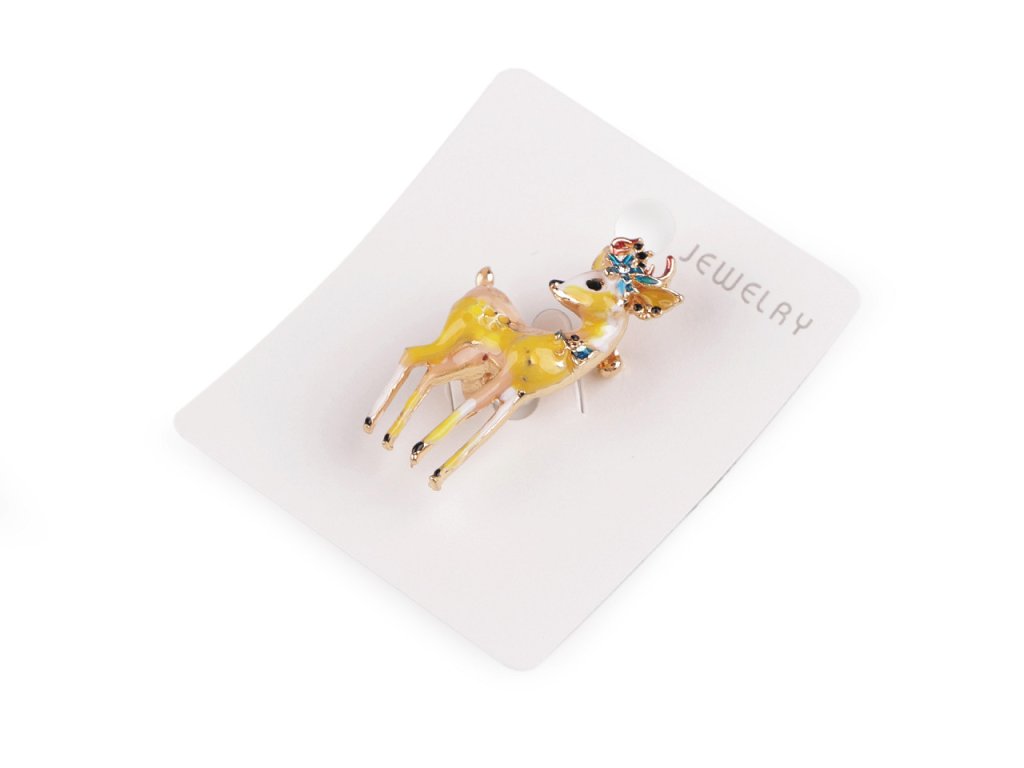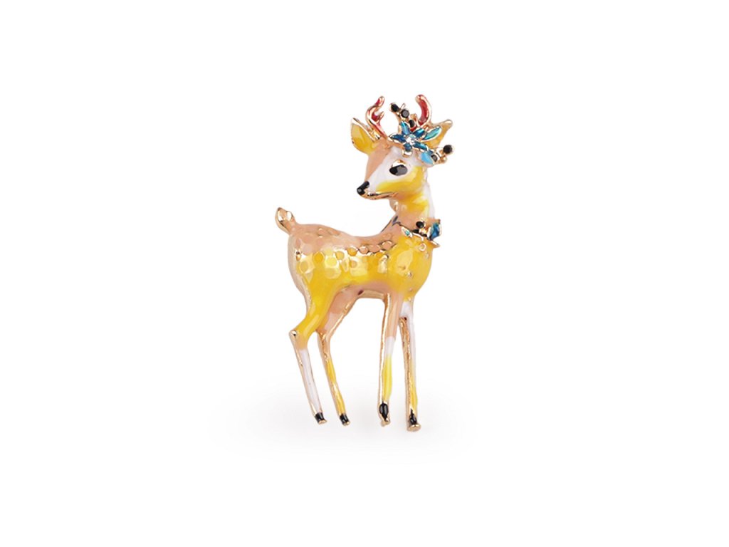 Brož srnky s barevným smaltem osloví všechny milovníky přírody a elegantních doplňků. Jemně zpracované detaily s broušenými kamínky dodávají této broži jedinečný šarm. Srnka vnese harmonii a půvab do každého dne, ať už jdete do práce nebo jen na procházku. Z rubu má brožový špendlík. Můžete ji nosit nejen na oděvech, hodí se i k ozdobení klobouků, tašky či sepnutí šátku. Brož je na plastové kartě, kterou lze zavěsit na prodejní stojany.- Rozměry: 2,3 x 4,3 cm