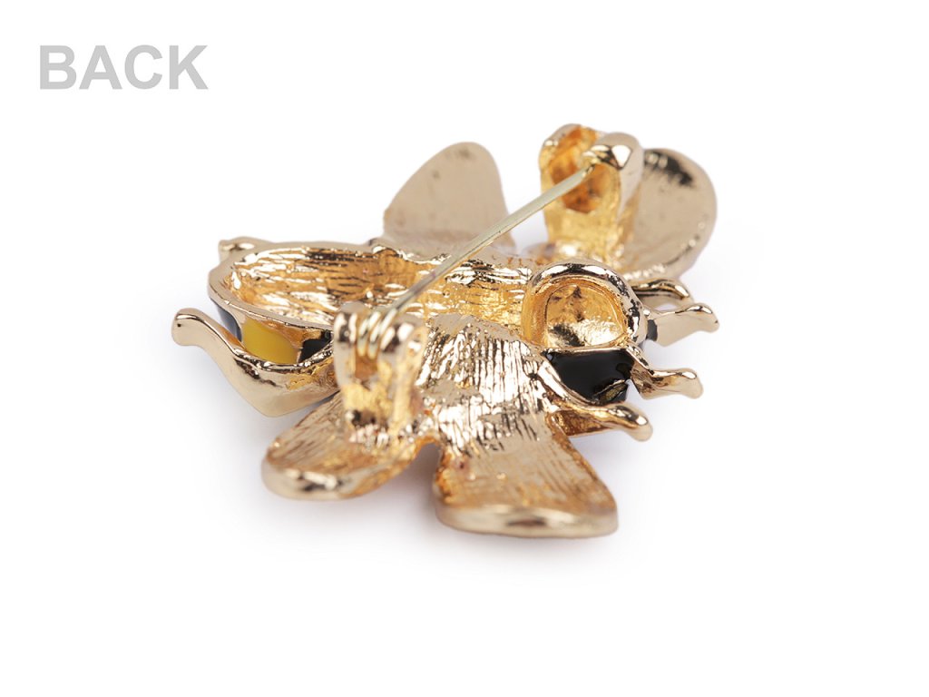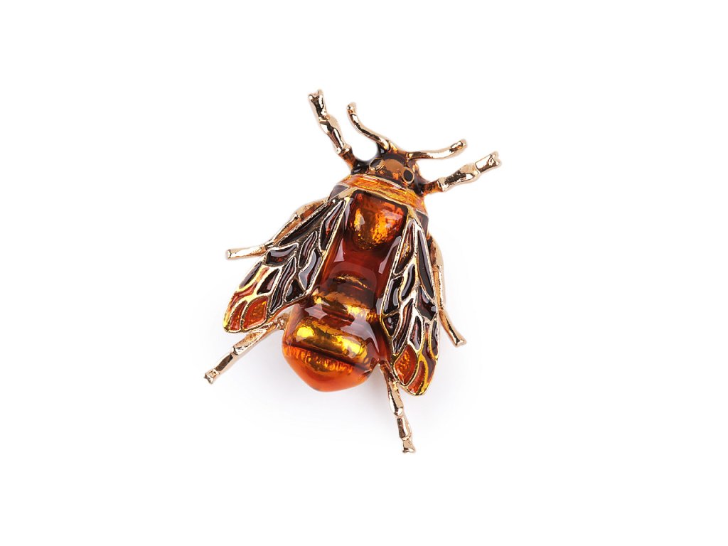 Kovovou brož s designem mouchy či vosy můžete nosit nejen na oděvech, ale hodí se i k ozdobení klobouků či sepnutí šátku. Zapíná se pomocí spínacího špendlíku.
