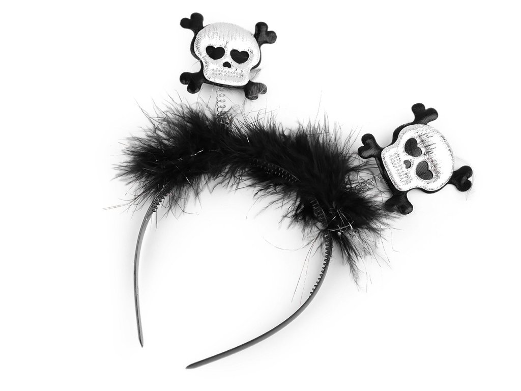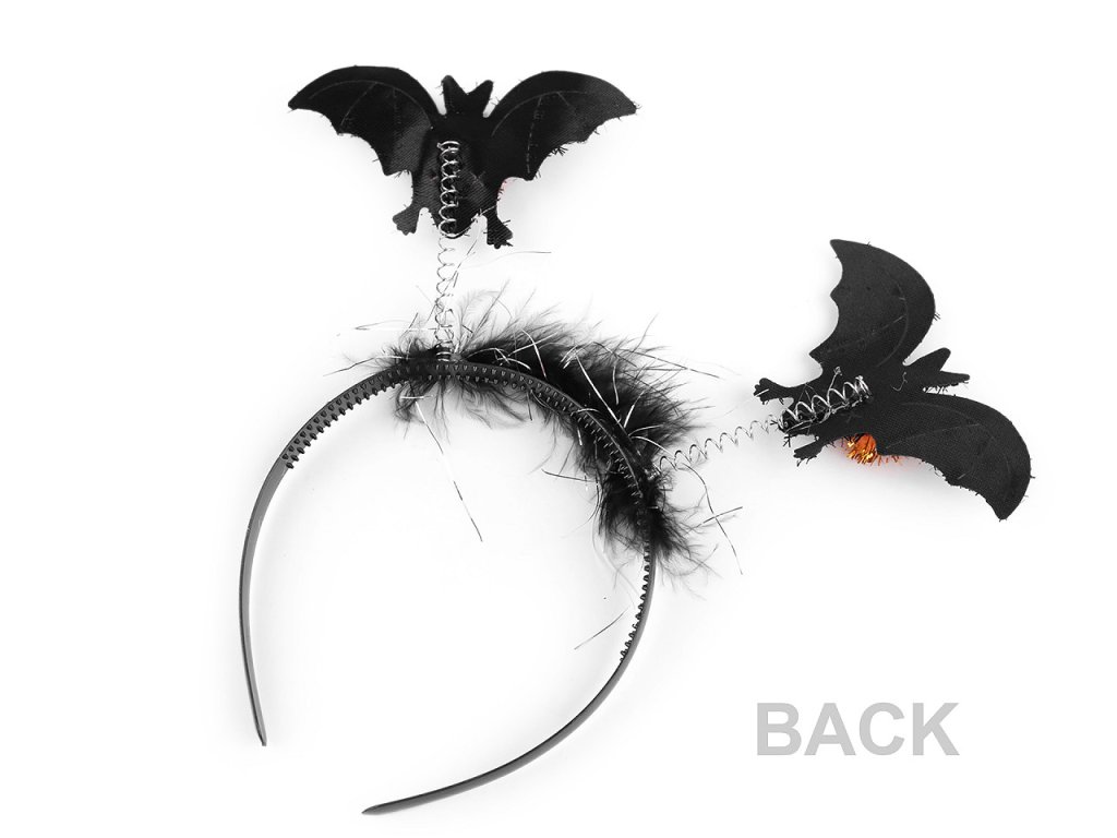 Strašidelná čelenka do vlasů je skvělým doplňkem k halloweenským a čarodějnickým kostýmům. Ozdoby v podobě netopýrů a lebek jsou na pružinách. Výška ozdob je cca 9 cm.- Obvod čelenky: 32 cm
