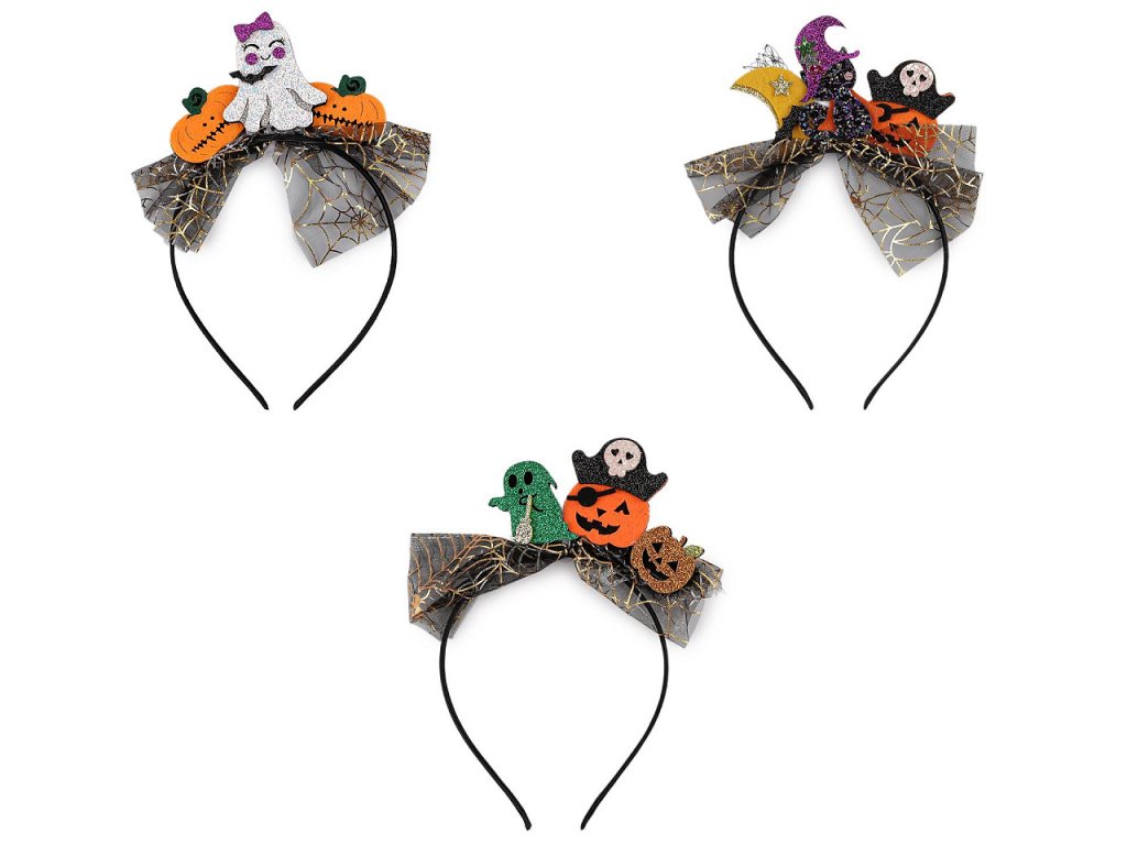Halloweenská čelenka do vlasů je originální doplněk, který vám zaručí, že budete vypadat stylově a hravě na každé párty, karnevalu či oslavě. Díky absenci zoubků je šetrná k vlasům a vy si ji snadno nasadíte i sundáte bez nepříjemného tahání, nepoškodí účes. Ozdoby na čelence jsou glitrové a efektně se třpytí. Rozměry ozdoby jsou cca 15 x 7 cm.- Obvod čelenky: 37 cm
