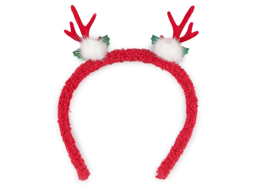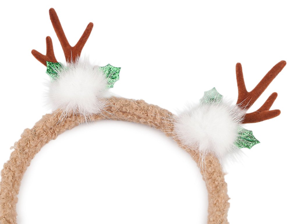Párty čelenku zdobí malé sametové parůžky s dalšími vánočními přízdobami. Je vtipným doplňkem na vánoční večírky, oslavy, zábavu, karneval, rodinná setkání, školní představení nebo Silvestra. Skvěle se hodí i jako zábavný doplněk do fotokoutku, kde se postará o veselé vzpomínky na společné chvíle s přáteli a rodinou. Rozměry jednoho parůžku jsou cca 5 x 7 cm.- Obvod čelenky: 34 cm
