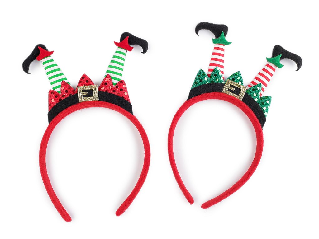 Elfí vánoční čelenka je vtipným doplňkem na vánoční večírky, oslavy, zábavu, karnevaly, rodinná setkání, školní představení nebo na Silvestra. Skvěle poslouží i ve fotokoutku. Výška nožiček je cca 9 cm.- Obvod čelenky: 35 cm