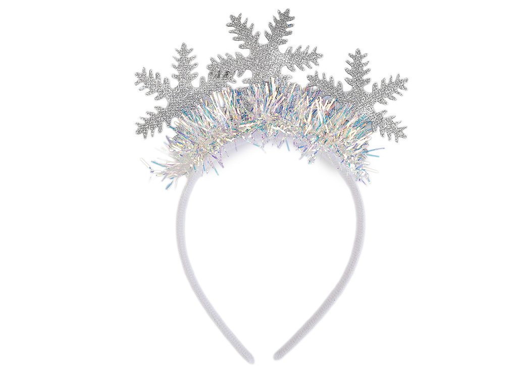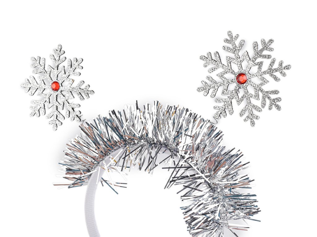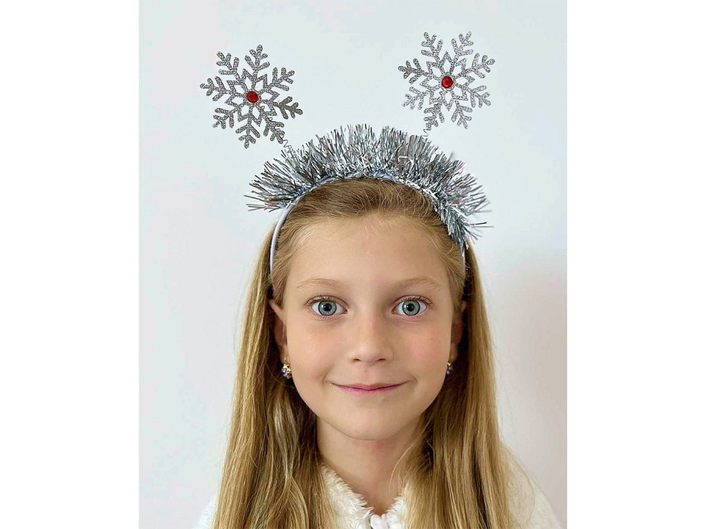 Čelenka s třpytivými vločkami je působivým doplňkem na vánoční večírky, zábavu, karneval, rodinná setkání, školní představení nebo na Silvestra. Skvěle se hodí i do fotokoutku. Vločky jsou na pružince a z přední strany mají glitry. Dále čelenku zdobí lesklé lamety. Výška vloček u varianty č. 1 je 7 cm. Výška vloček u varianty č. 2 je 11 cm.- Obvod čelenky: 34 cm
