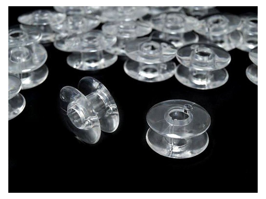 Plastové cívky k šicímu stroji Singer. Na uskladnění cívek doporučujeme praktický plastový box.- Výška: 11 mm