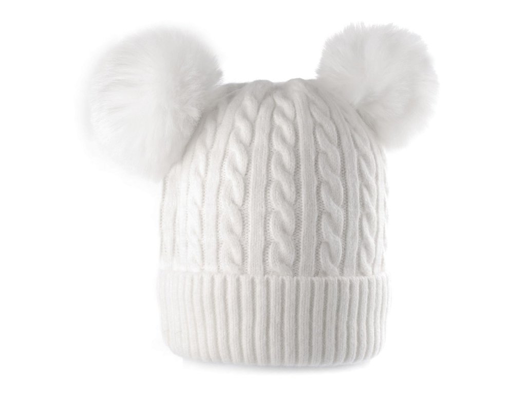Dívčí zimní čepice s velkými bambulemi připomíná roztomilé zvířátko s oušky. Má ohrnutý okraj, díky kterému dobře drží. Bude hřát celou zimu, uvnitř má jemný plyš, jenž je velice příjemný na dotek. Chlupaté bambule imitují pravou kožešinu. Volně položený obvod lemu je 42 cm, natažený až 60 cm. Výška čepice je 23 cm bez bambule.- Výška: 23 cm