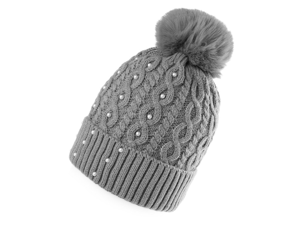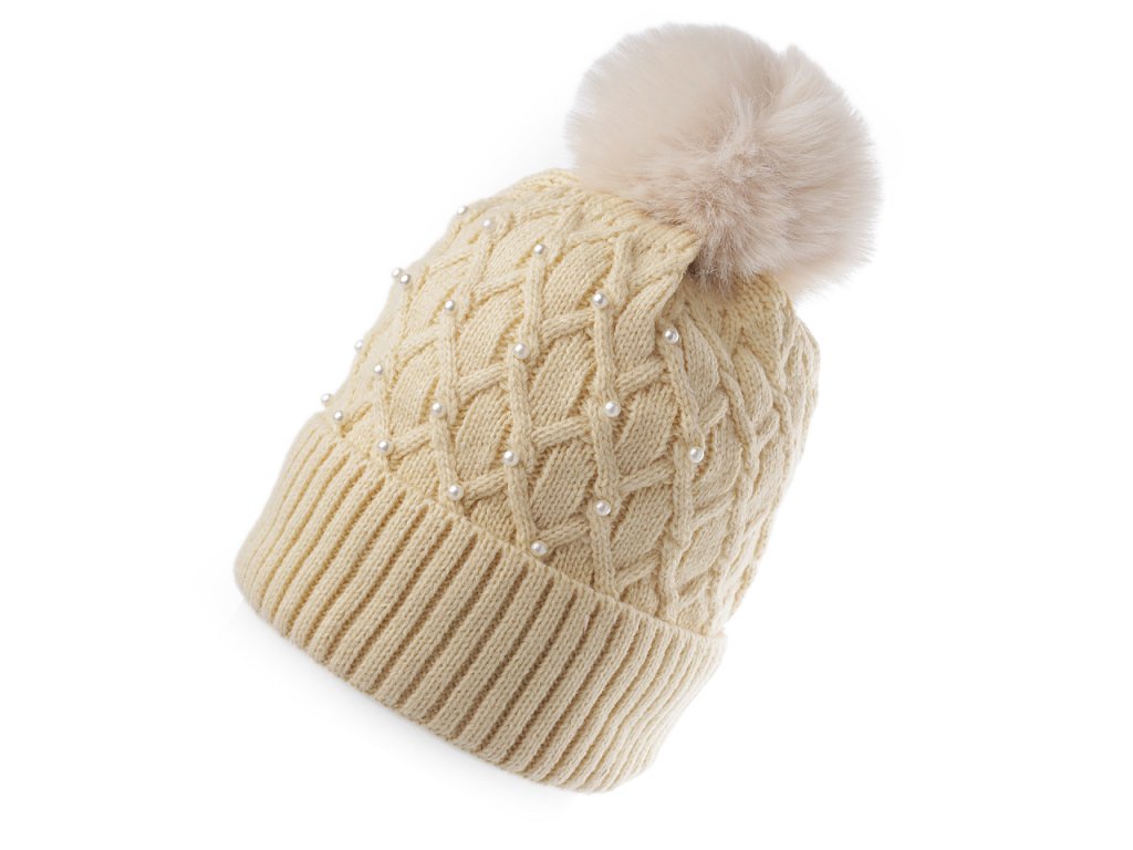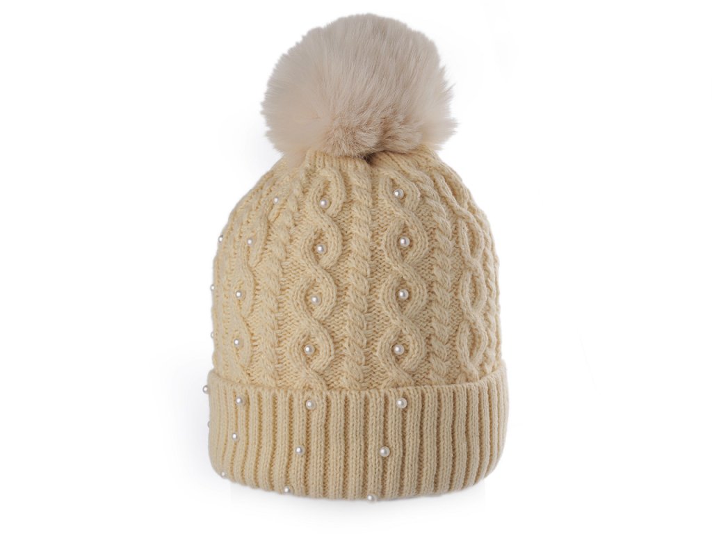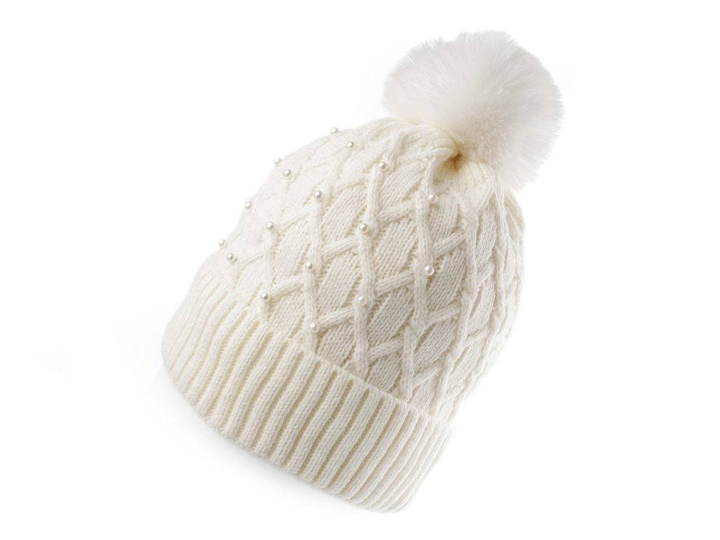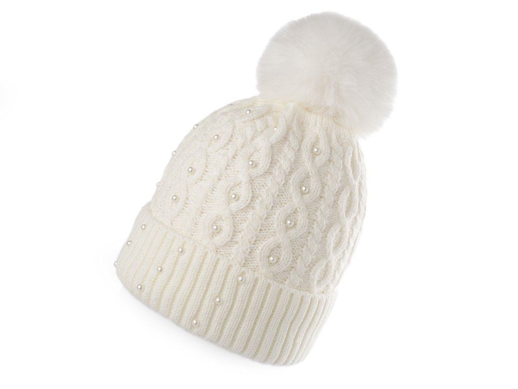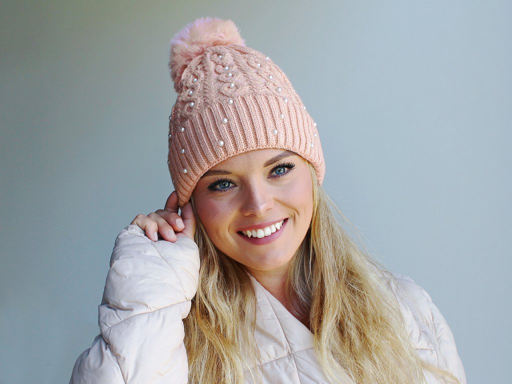 Dámská / dívčí zimní čepice s bambulí a perlami Emi Ross
