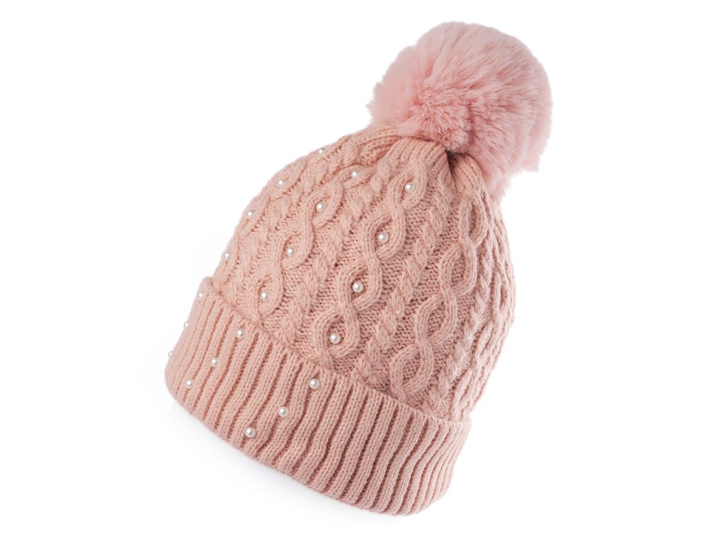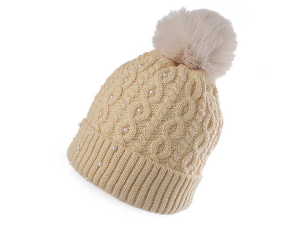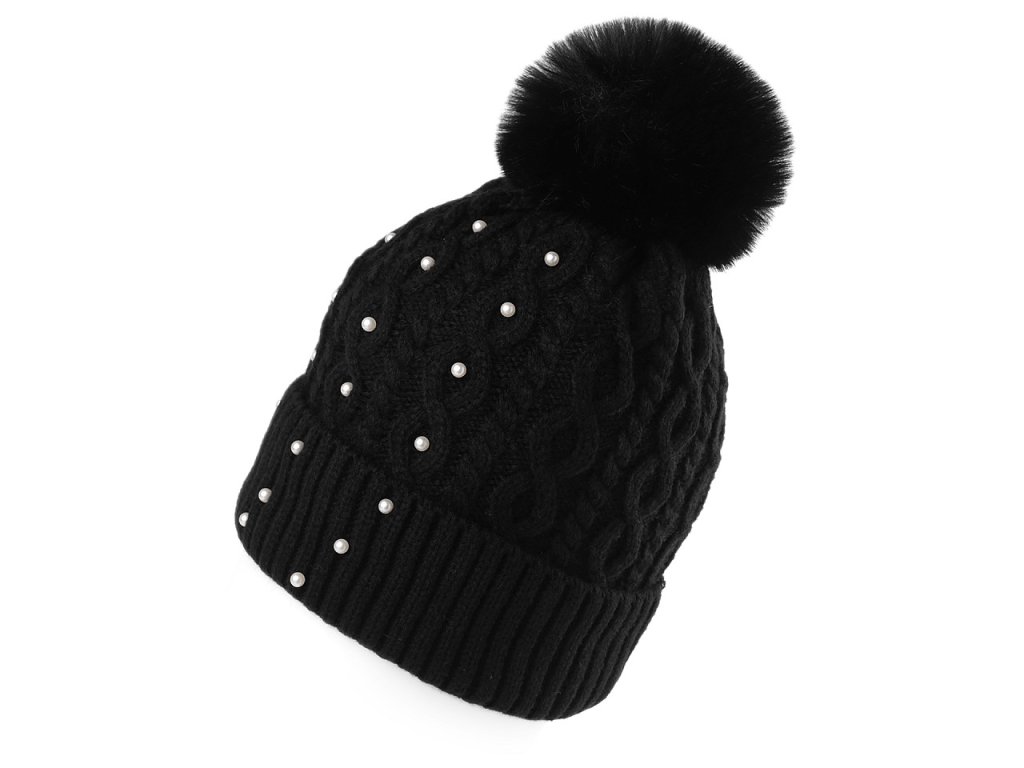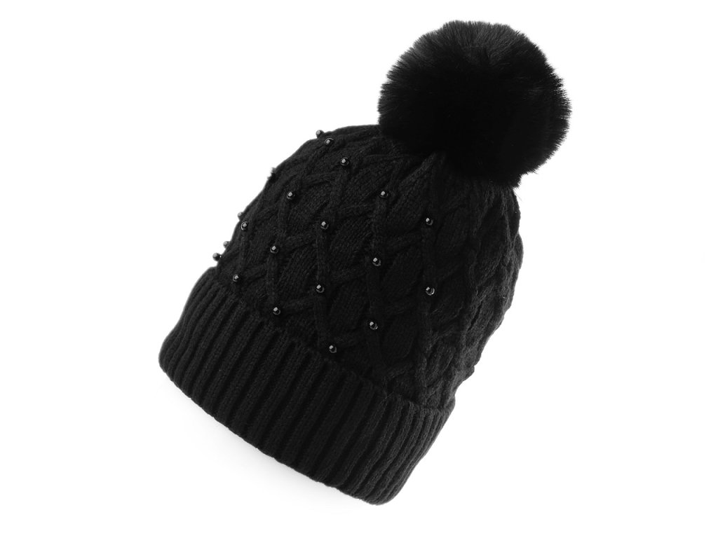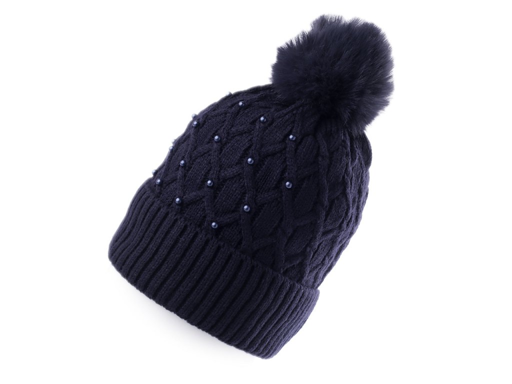 Dámská / dívčí zimní čepice s bambulí a perlami Emi Ross