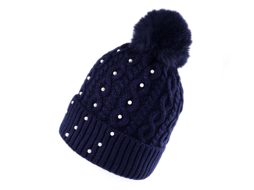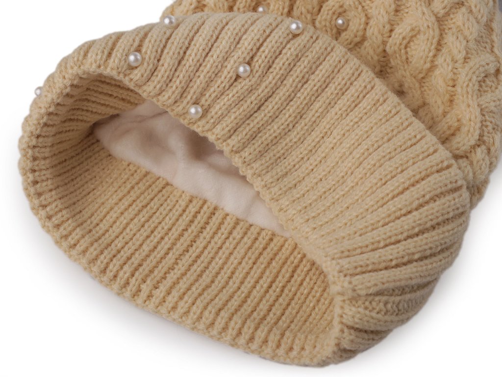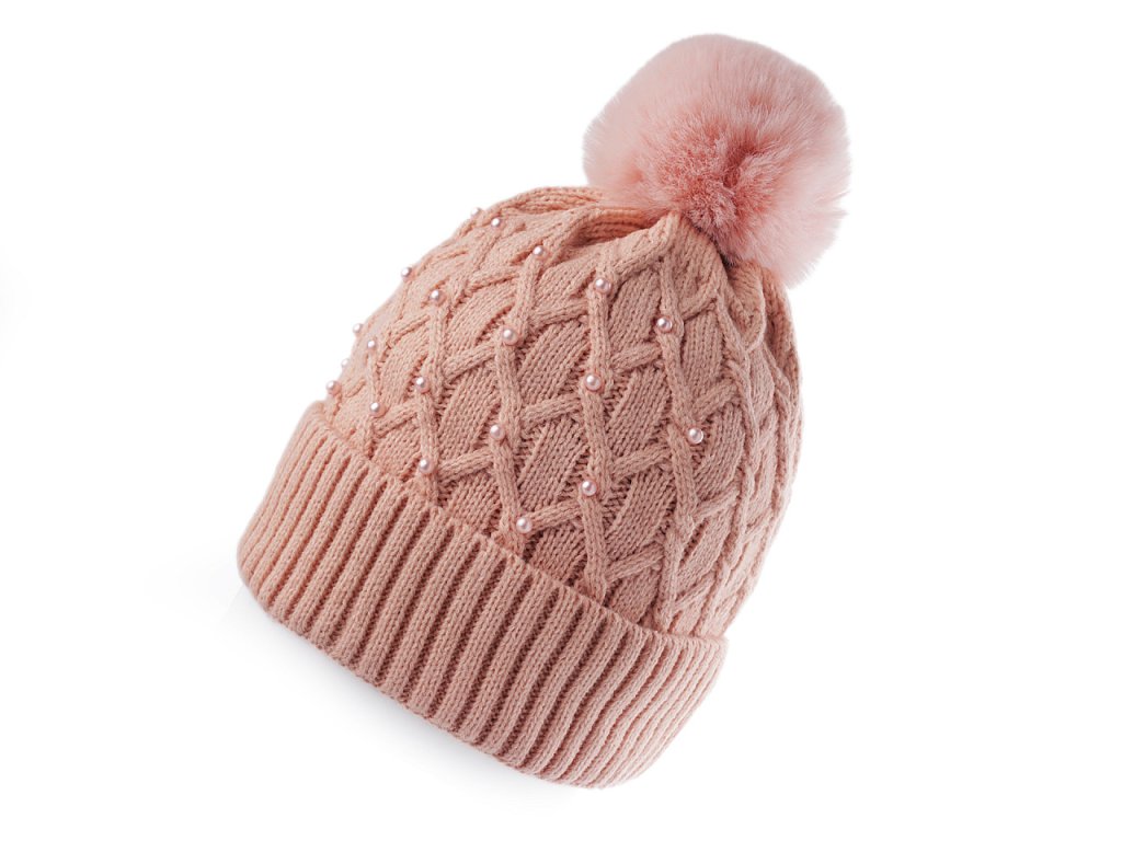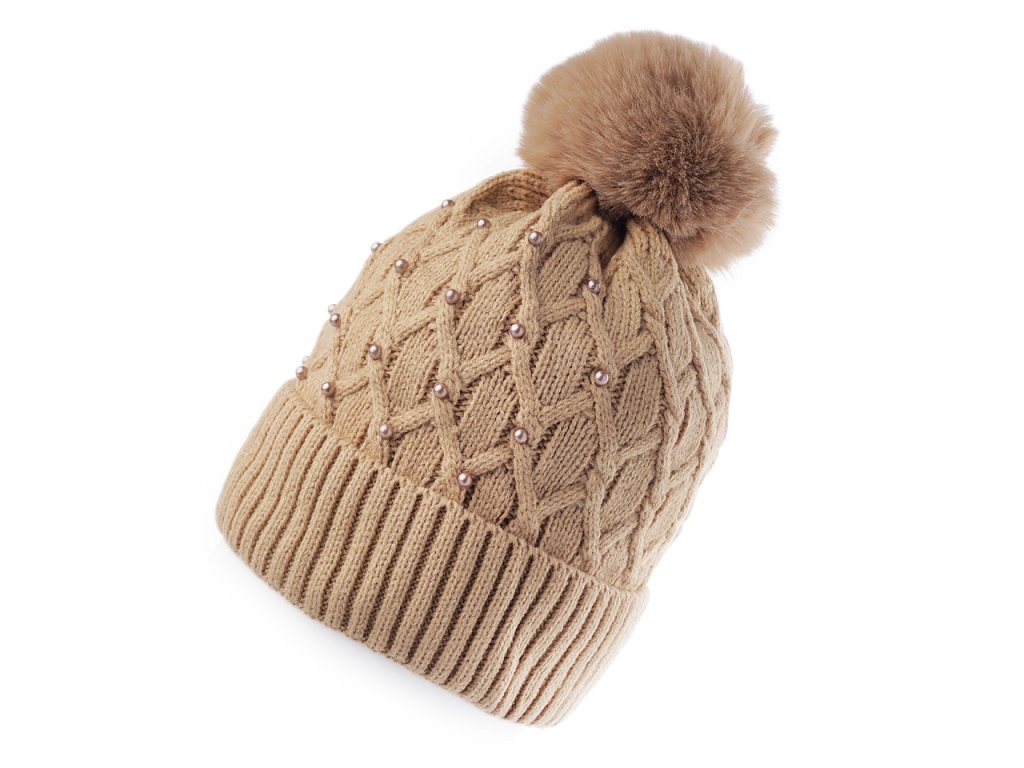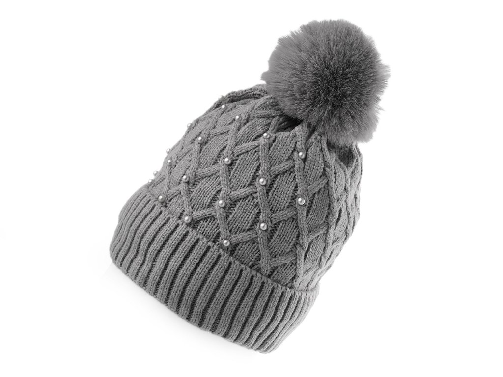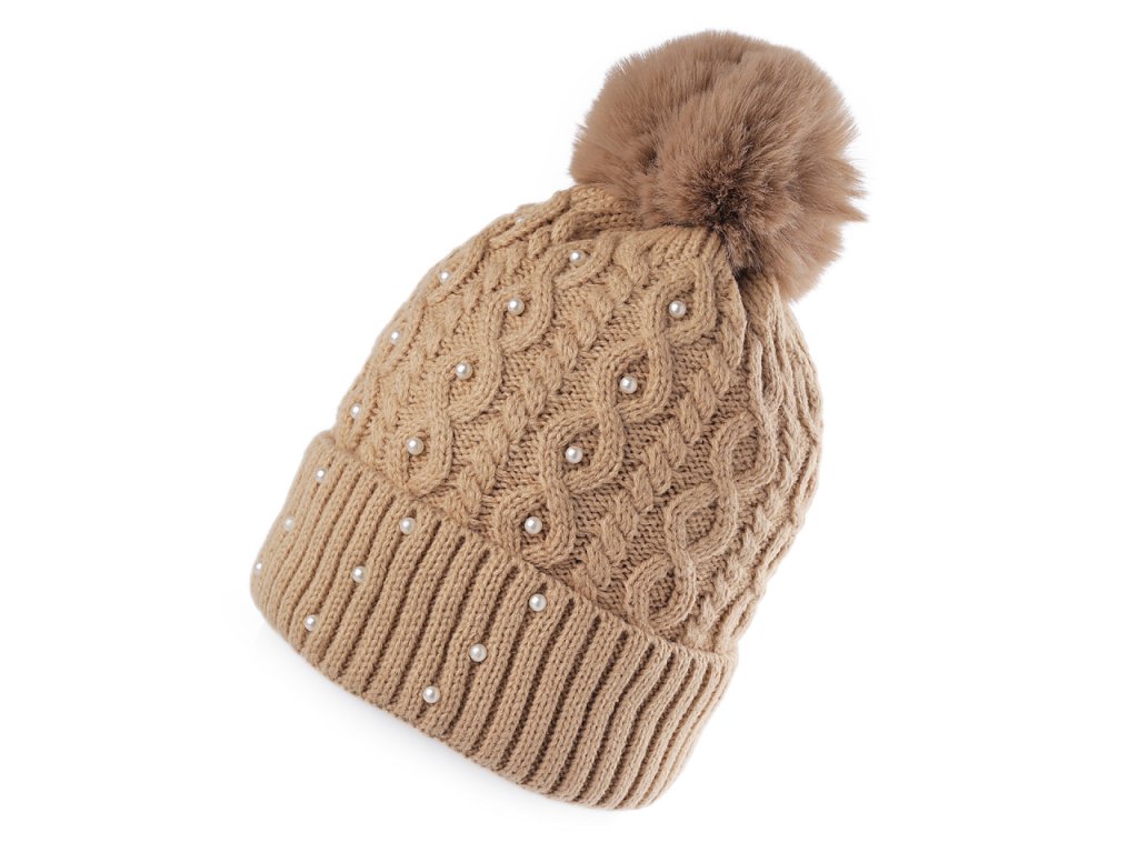 Dámská / dívčí zimní čepice s bambulí a perlami Emi Ross