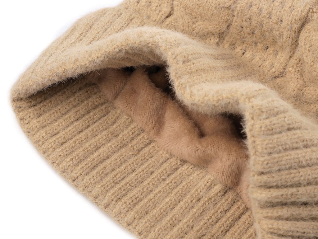 Pletená čepice s bambulí a copánkovým vzorem vás bude hřát celou zimu. Má ohrnutý okraj, uvnitř má jemný plyš, jenž je velice příjemný na dotek. Bambule věrně imituje pravou kožešinu. Volně položený obvod lemu je 40 cm, natažený až 60 cm. Výška lemu je 7,5 cm. Výška čepice je 23 cm bez bambule.- Výška: 23 cm