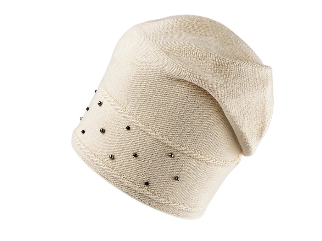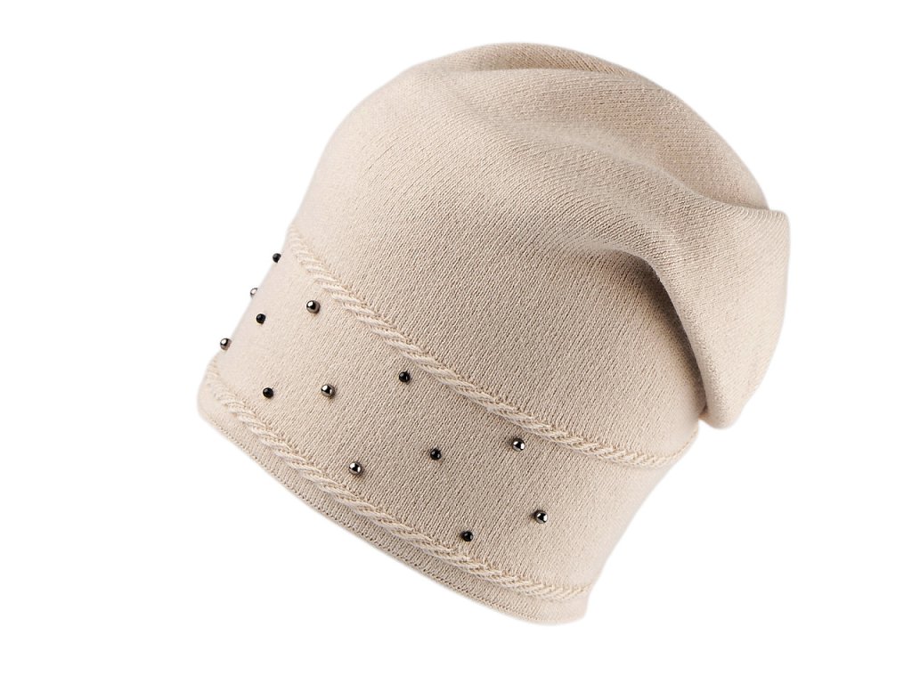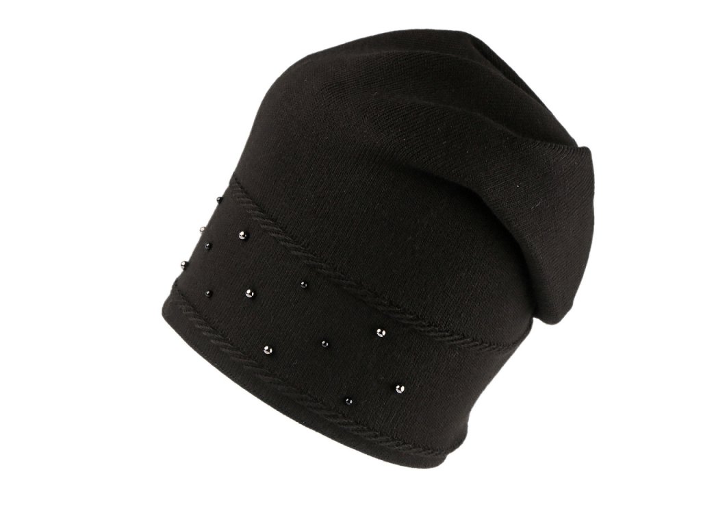 Pletená čepice s perlami ve stylu Homeless má mladistvý ležérní střih se spuštěným zadním koncem. Konec čepice je přešitý, odpadá její složité aranžování na hlavě. Perly v přední části dodávají celkovému vzhledu lesk a styl. Materiálová úprava lamblook dodává čepici příjemnou kašmírovou měkkost a komfort při nošení. Čepice vás bude hřát celou zimu, má lem z dvojité pleteniny, je ideální pro zimní procházky ve městě i pro outdoorové aktivity. Volně položený obvod lemu je 46 cm, natažený až 60 cm. Výška čepice je 22,5 cm.- Výška: 22,5 cm
