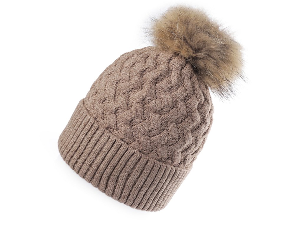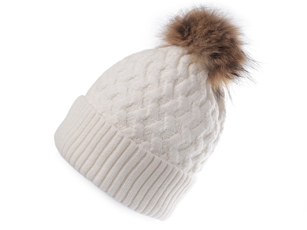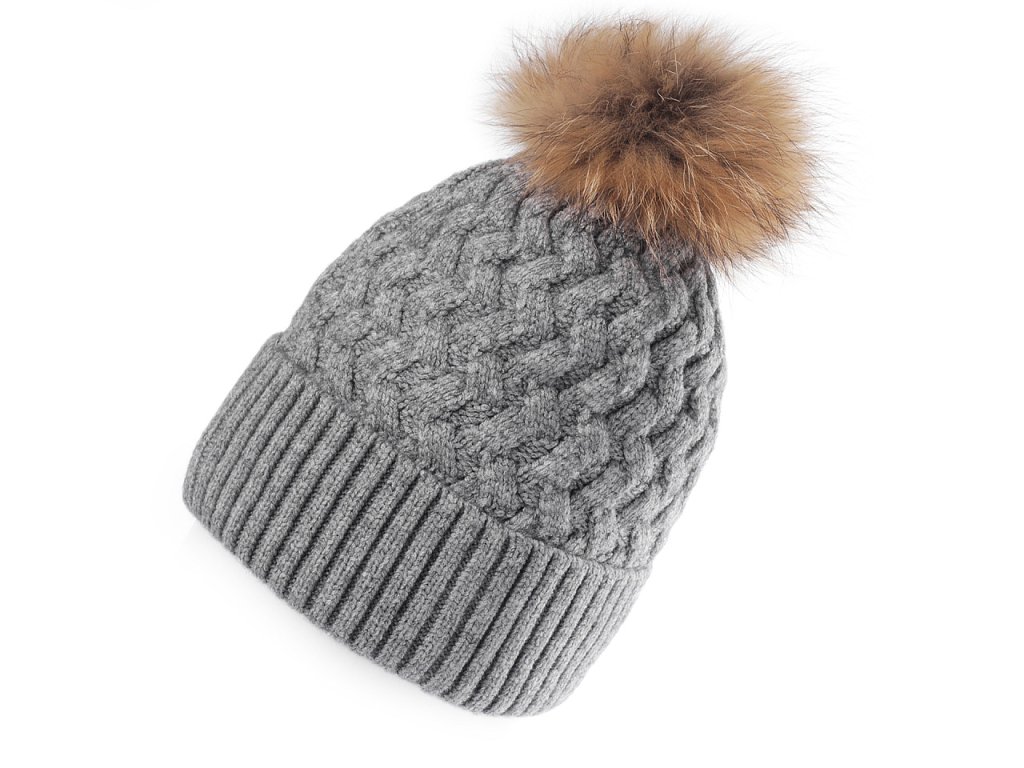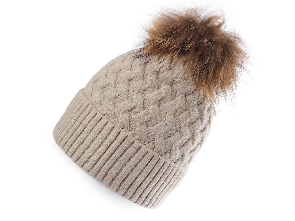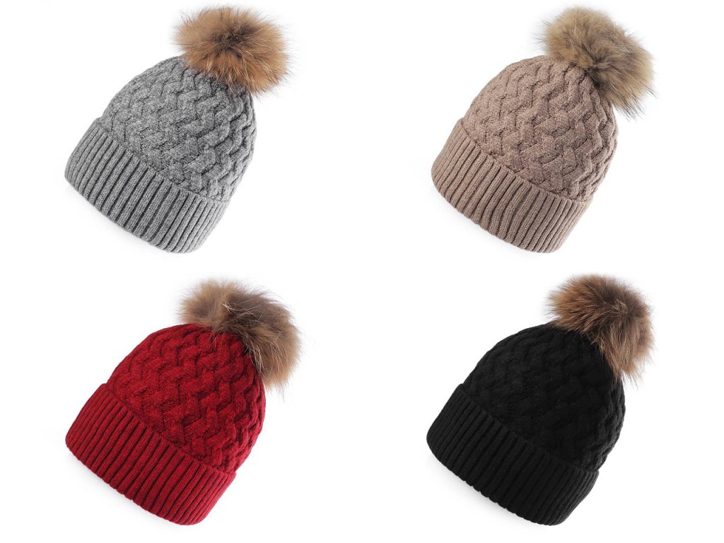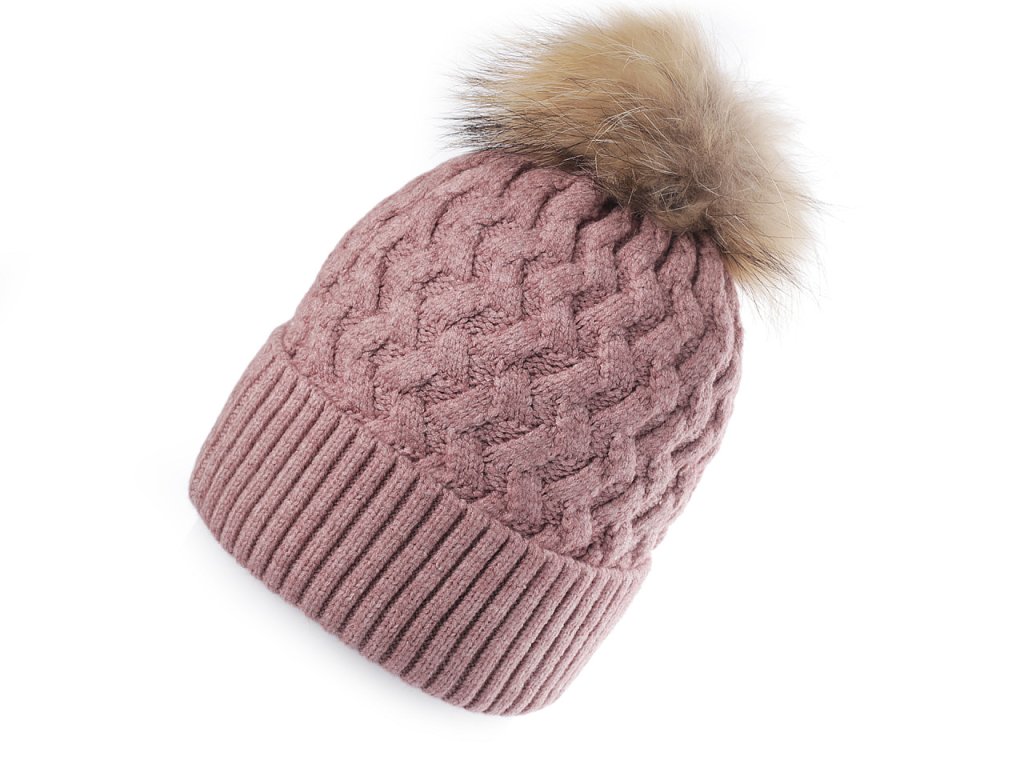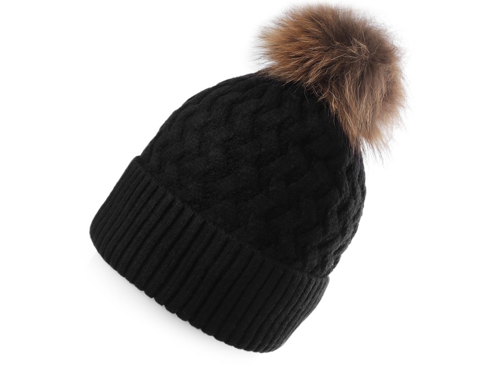 Dámská / dívčí zimní čepice s pravou kožešinovou bambulí Emi Ross