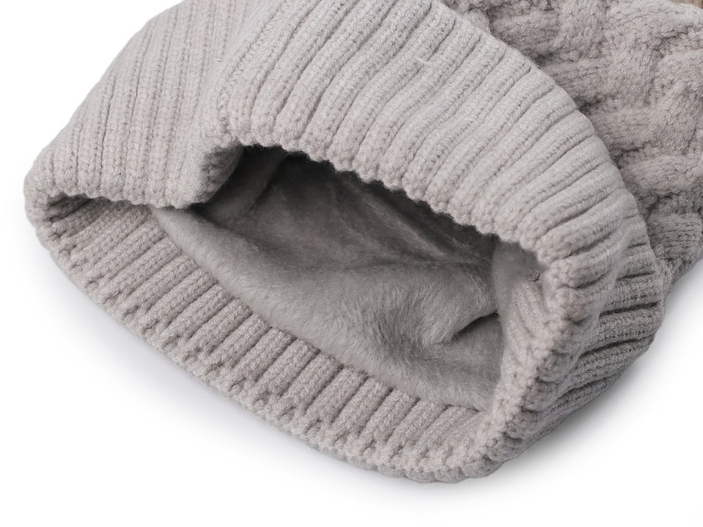 Pletená čepice s velkou kožešinovou bambulí a ohrnutým okrajem má zajímavou chevronovou strukturu. Bude vás hřát celou zimu, uvnitř má jemný plyš, jenž je velice příjemný na dotek. Volně položený obvod lemu je 40 cm, natažený až 60 cm. Výška lemu je 7,5 cm. Výška čepice je 22 cm bez bambule.- Výška: 22 cm