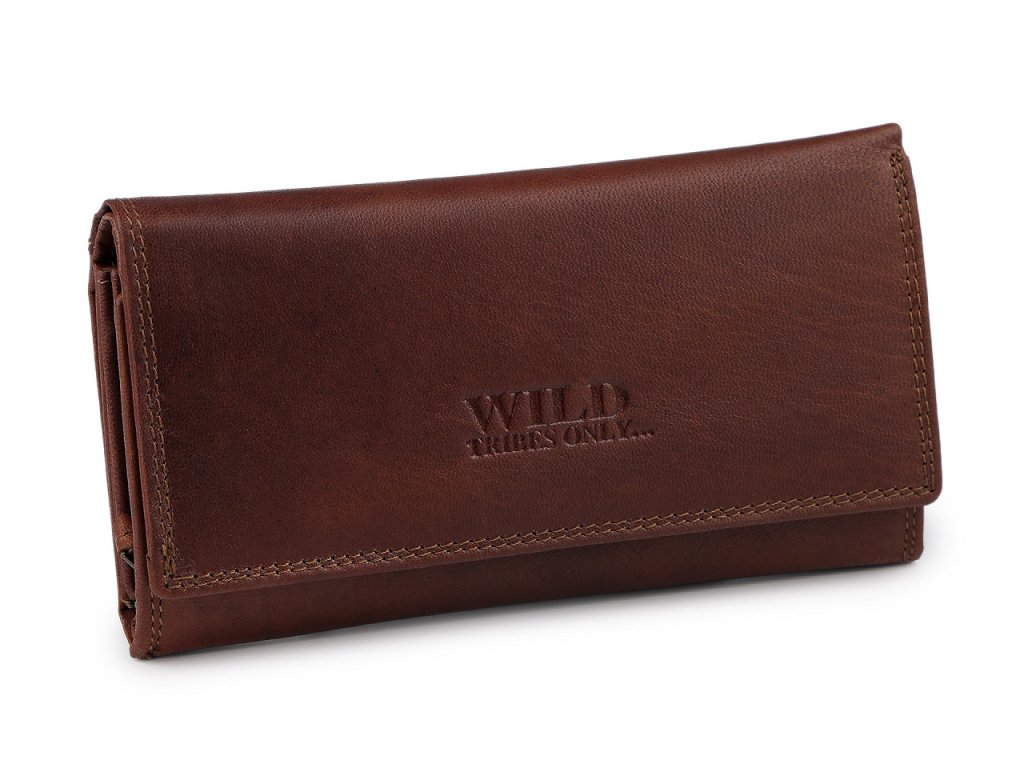 Dámská kožená peněženka má velice kvalitní provedení a chytrý design. Je velmi příjemná na dotek. Peněženka má přední stranu na klopu se zapínáním na patent. Po otevření se objeví 14 přihrádek na kreditní karty, 1 je průhledná. Za přihrádkami po pravé straně jsou 2 dlouhé přihrádky, jedna se uzavírá na zip. Po rozevření naleznete 3 velké kapsy rozdělené separací, 1 plochou kapsu a 1 kapsu na zip, sloužící jako mincovník, která je separací rozdělená na 2 oddíly. Na zadní straně má peněženka velkou plochou kapsu a rozkládací kapsu na zip, která také může sloužit jako mincovník.- Rozměry: 10 x 19 x 4 cm