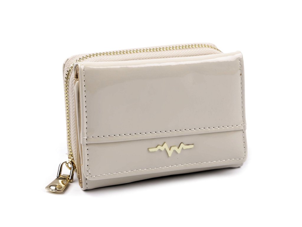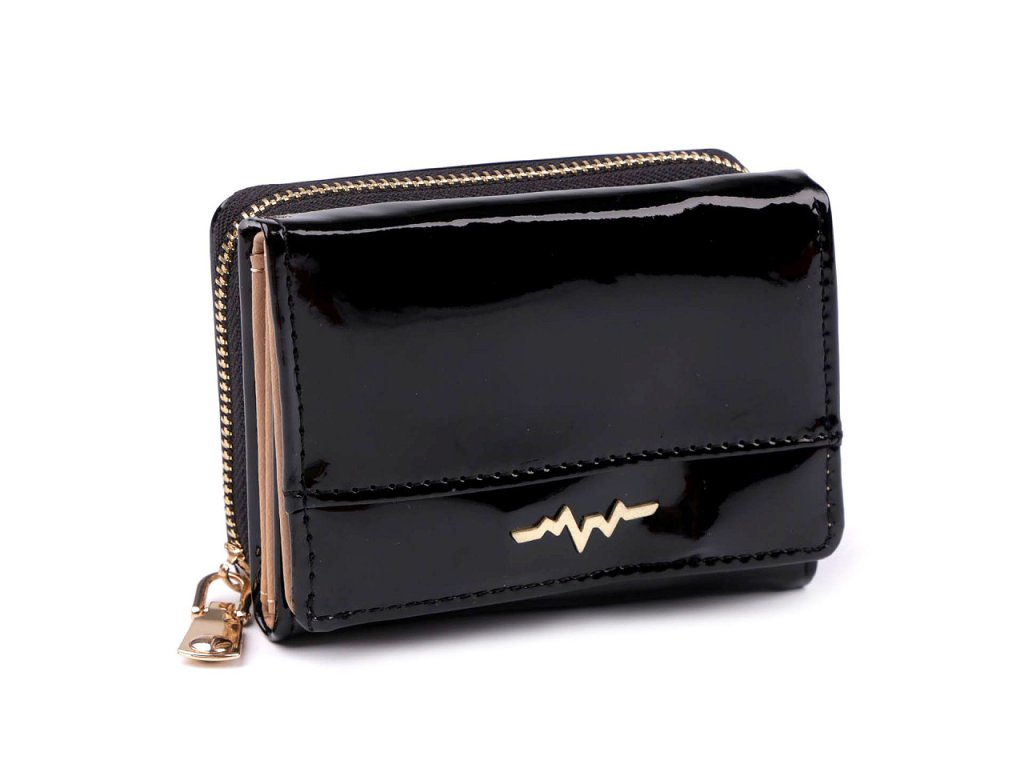 Malá dámská peněženka je elegantní, má velice kvalitní provedení. Nadchne vás svým potahem, který má vysoký lesk a kovovou ozdobu. Přední část peněženky se uzavírá na patent. Uvnitř je 5 přihrádek na kreditní karty, 1 průhledná přihrádka na doklady a dlouhá přihrádka na bankovky. Mincovník v zadní části peněženky se zapíná na zip, uvnitř má 2 přihrádky na mince a harmoniku s 9 kapsami.- Rozměry (ŠxVxH): 8 x 11 x 4 cm
