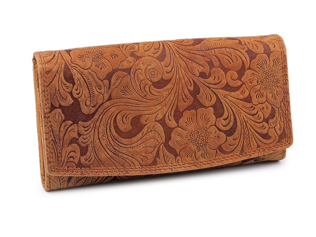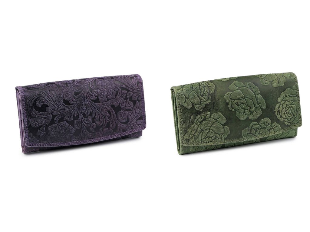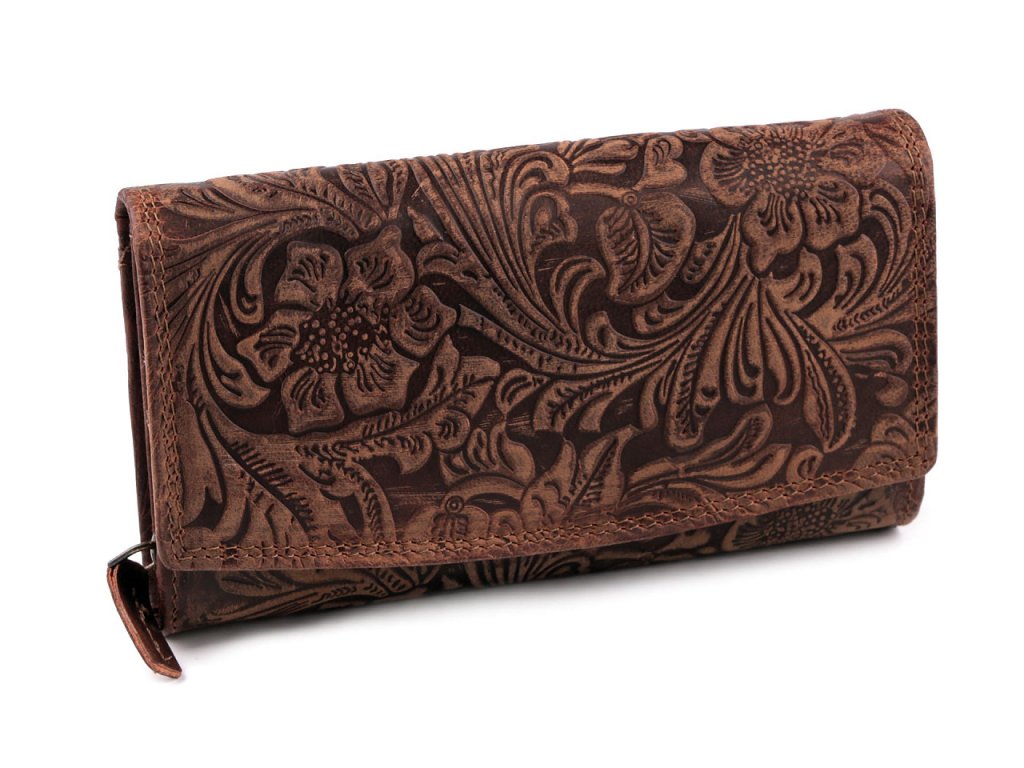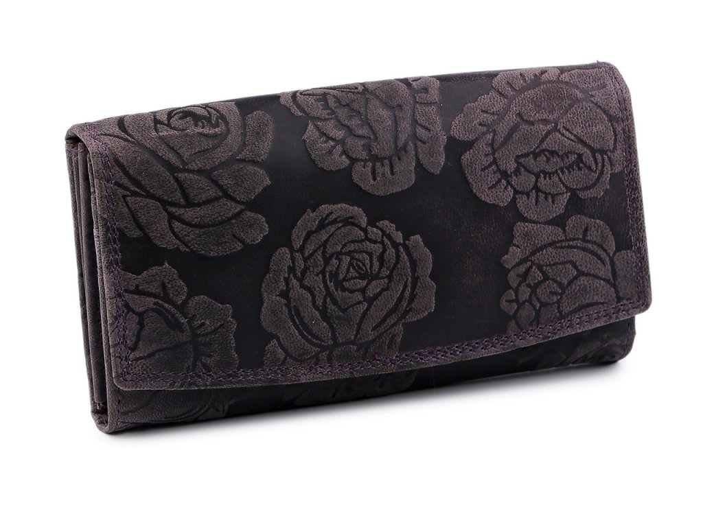 Luxusní dámská peněženka z pravé kůže má velice kvalitní provedení a chytrý design. Má elegantní povrch s velkými raženými vzory. Peněženka má přední straně klopu se zapínáním na patent. Nabídne své majitelce velké množství kapes a přihrádek. Kromě velkého úložného prostoru na bankovky, má i uzavítratelnou kapsu na mince, kapsu na doklady, místo pro uložení víc jak 10 platebních nebo věrnostních karet a mnoho dalších kapes pro vaše použití. Odstíny peněženek se mohou mírně lišit, děkujeme za pochopení.- Rozměry: 10 x 15 x 4 cm