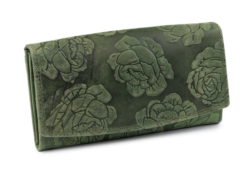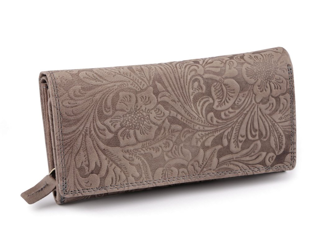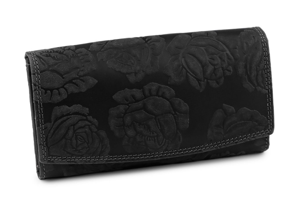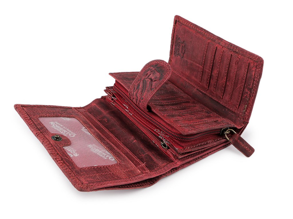 Luxusní dámská peněženka z pravé kůže má velice kvalitní provedení a chytrý design. Má elegantní povrch s velkými raženými vzory. Peněženka má přední straně klopu se zapínáním na patent. Nabídne své majitelce velké množství kapes a přihrádek. Kromě velkého úložného prostoru na bankovky, má i uzavítratelnou kapsu na mince, kapsu na doklady, místo pro uložení víc jak 10 platebních nebo věrnostních karet a mnoho dalších kapes pro vaše použití. Odstíny peněženek se mohou mírně lišit, děkujeme za pochopení.- Rozměry: 10 x 15 x 4 cm