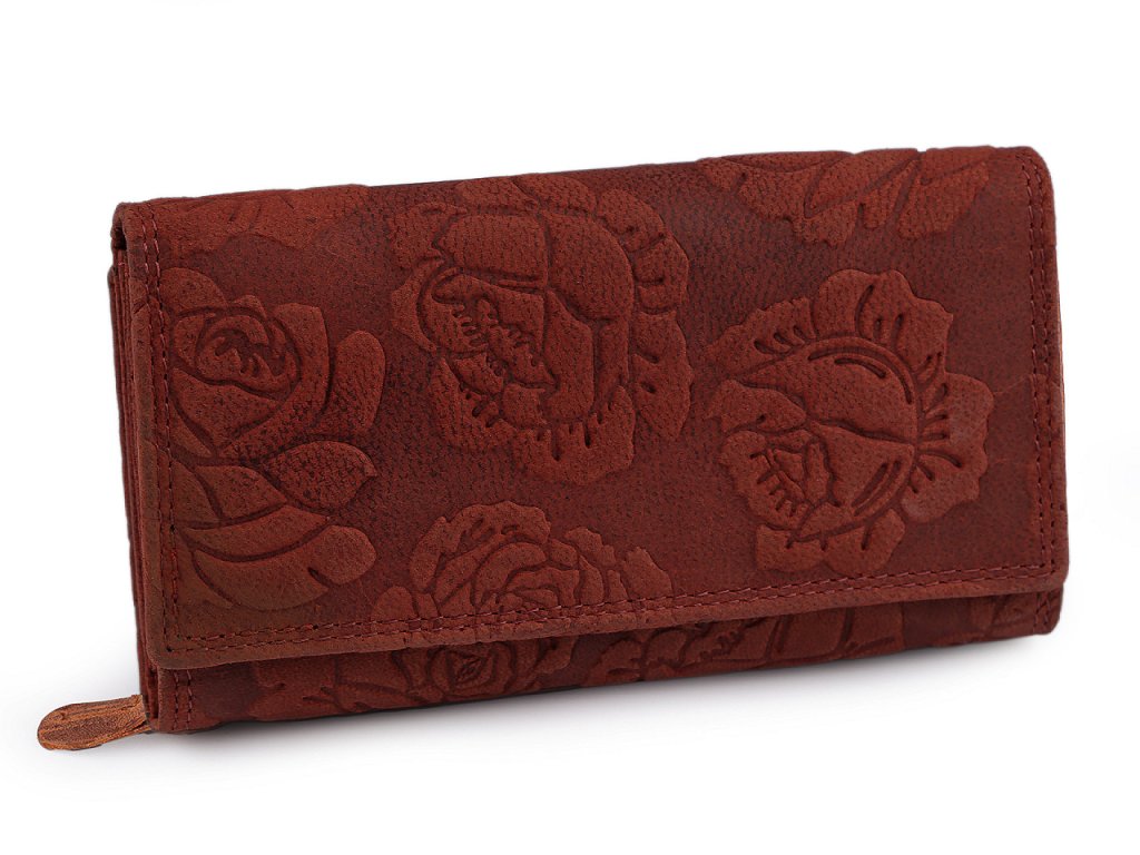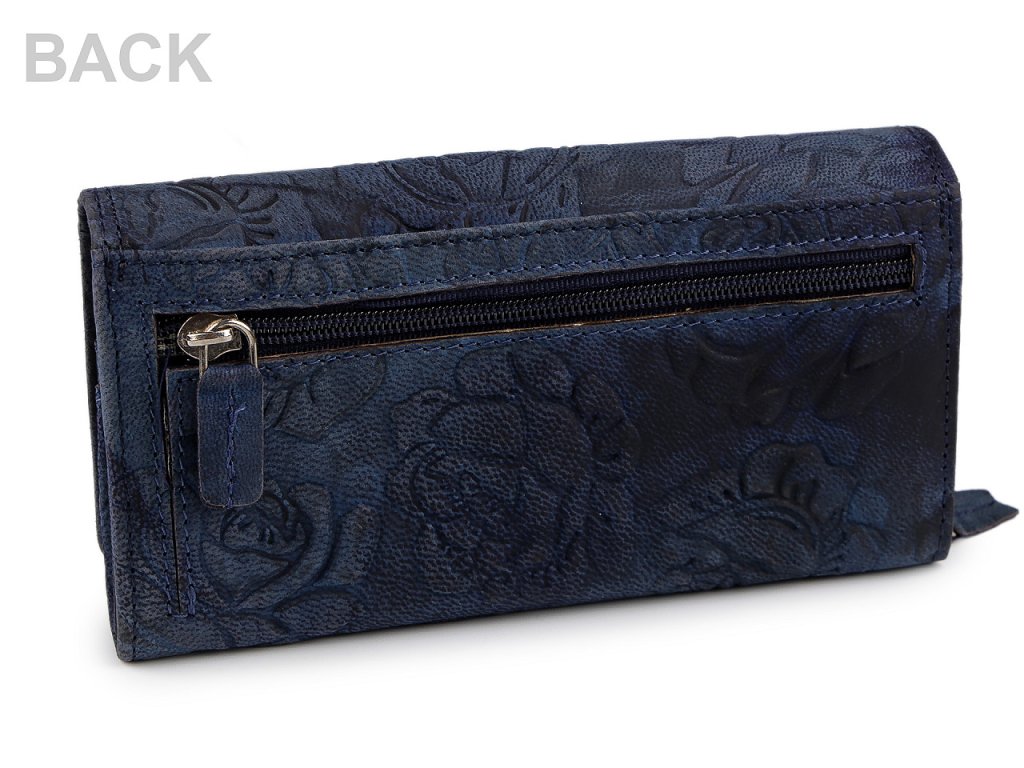 Luxusní dámská peněženka z pravé kůže má velice kvalitní provedení a chytrý design. Má elegantní povrch s velkými raženými květy. Peněženka č.1 - 9 má přední stranu na klopu s 2 patenty. Nabídne své majitelce velké množství kapes a přihrádek. Kromě velkého úložného prostoru na bankovky, má i uzavítratelnou kapsu na mince, kapsu na doklady, místo pro uložení 10 platebních nebo věrnostních karet a mnoho dalších kapes pro vaše použití. Peněženky č.10 - 18 jsou dlouhé 17 cm. Klopu na patent mají z přední i zadní strany. Nabídnou své majitelce velké množství kapes a přihrádek. Kromě velkého úložného prostoru na bankovky, mají i uzavítratelnou kapsu na mince, kapsu na doklady, místo pro uložení 21 platebních nebo věrnostních karet a mnoho dalších kapes. Upozorňujeme zákazníky, že odstíny peněženek se mohou mírně lišit. Některé peněženky mohou mít zip ze zadní strany nebo mohou mít zapínání na přezku.- Rozměry: 10 x 19 x 4 cm