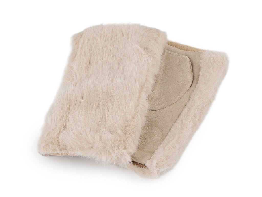 Bezprsté rukavice ozdobené umělým kožíškem představují spojení elegance a praktičnosti. Jsou měkké a příjemné na dotek, což zaručuje komfort při nošení. Jsou ideálním doplňkem do sychravého podzimního a zimního počasí. Snadno se kombinují s různými styly oblečení, ať už se chystáte do práce, na procházku do města, nebo na večírek. Bezprstý střih dodává moderní nádech a zároveň umožňuje volný pohyb prstů. Spodní textilní strana výborně pruží, díky tomu se rukavice perfektně přizpůsobí. Uvnitř mají jemný plyš, jenž je velice příjemný na dotek. Šířka je měřená na volně položených rukavicích uprostřed (bez palce).- Šířka: 8 cm